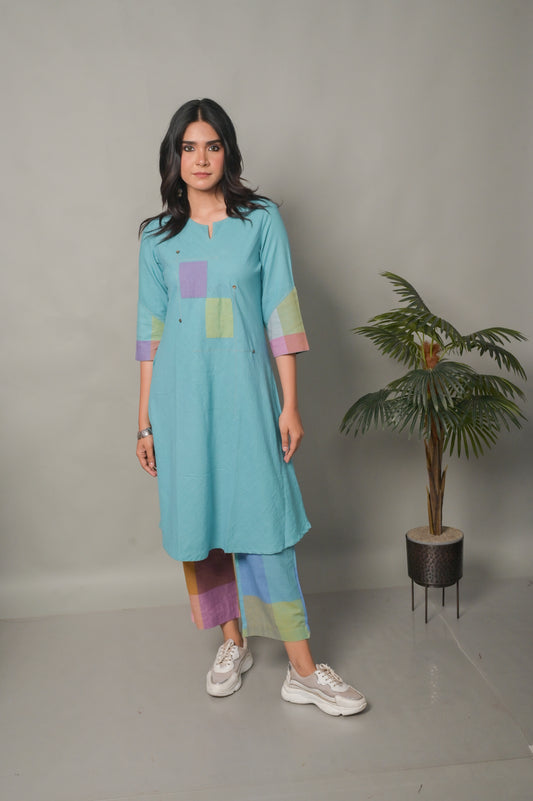 Powder Blue Cotton Woven Buti Kurta Set (set of 2)