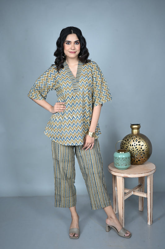 Ajrakh Zigzag Hand Block Printed Anti-Fit Top