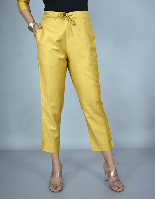 Crafted from rich silk slub fabric, these gold pants offer a luxurious yet comfortable fit....