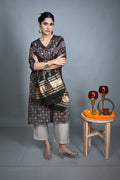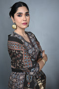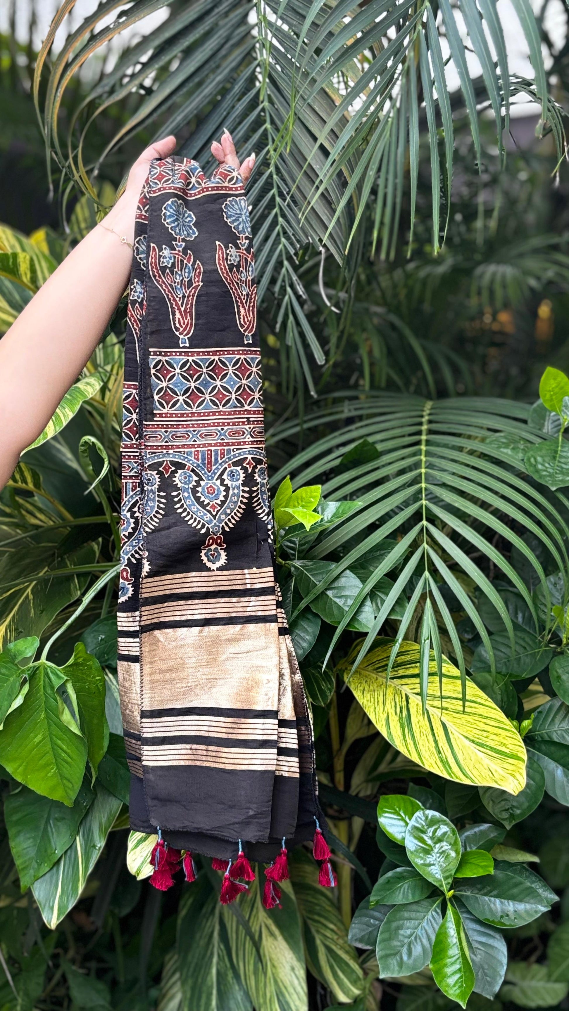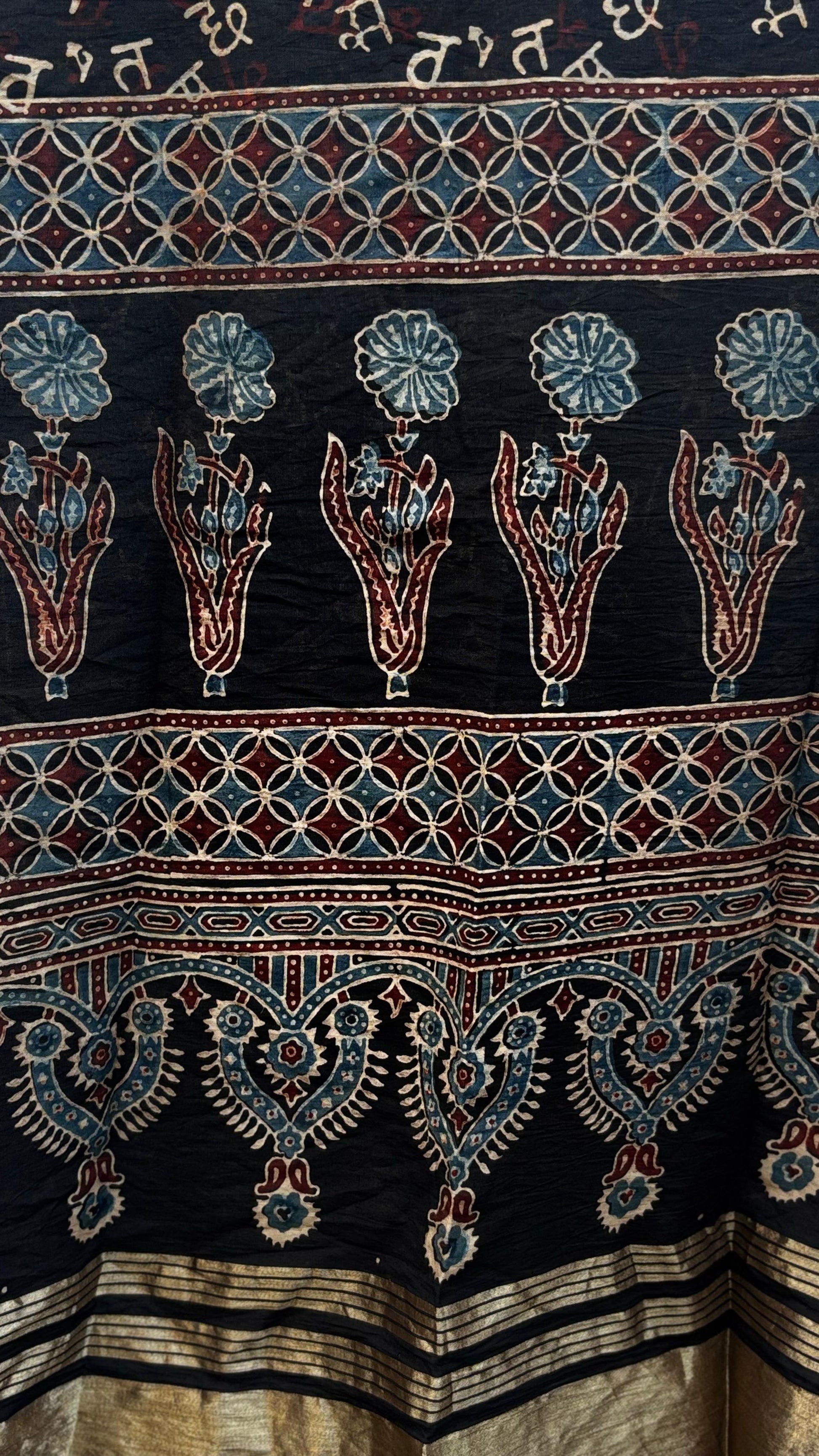 Black Ajrakh Cotton Stole with Chanderi Silk Detailing