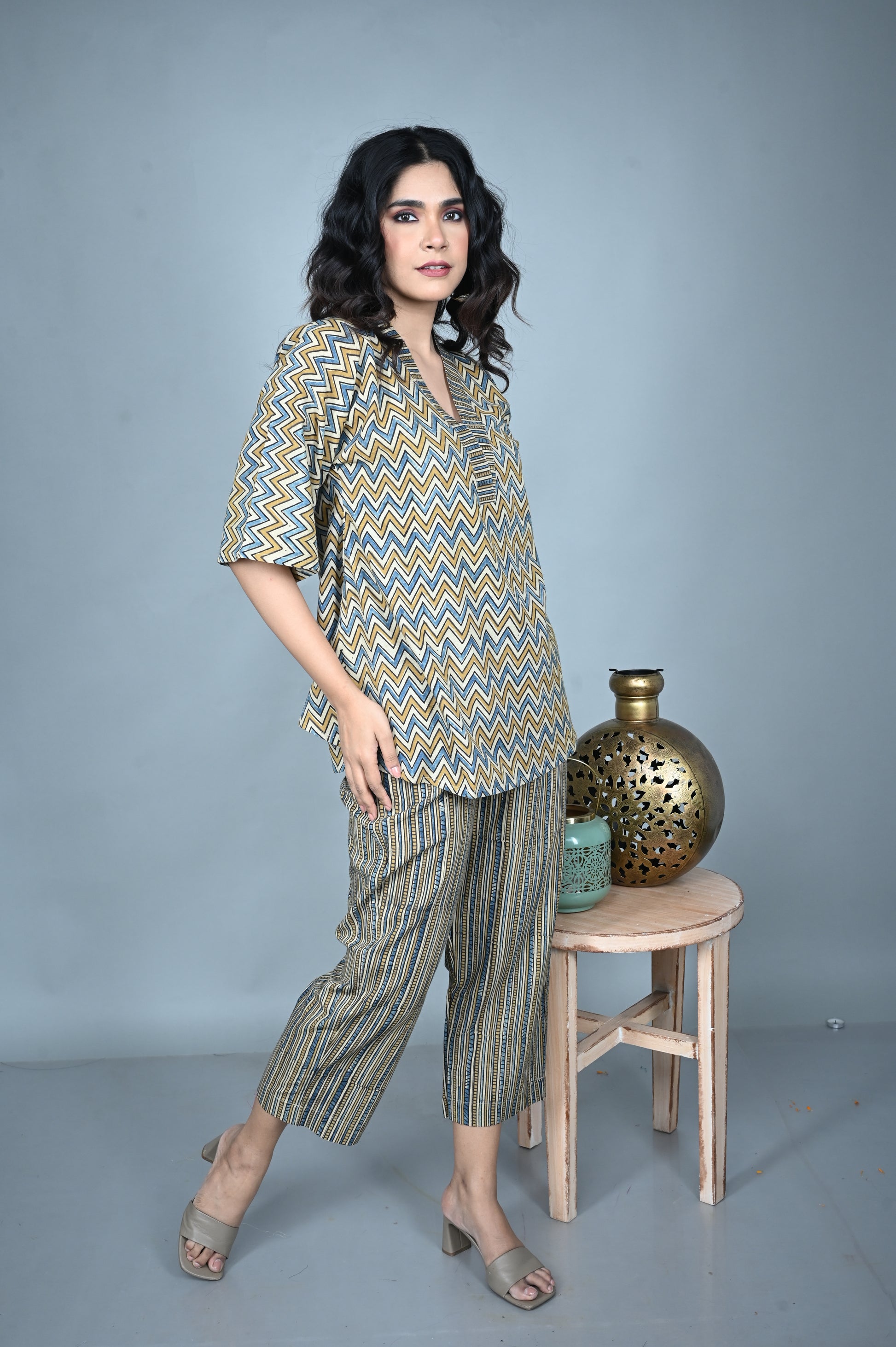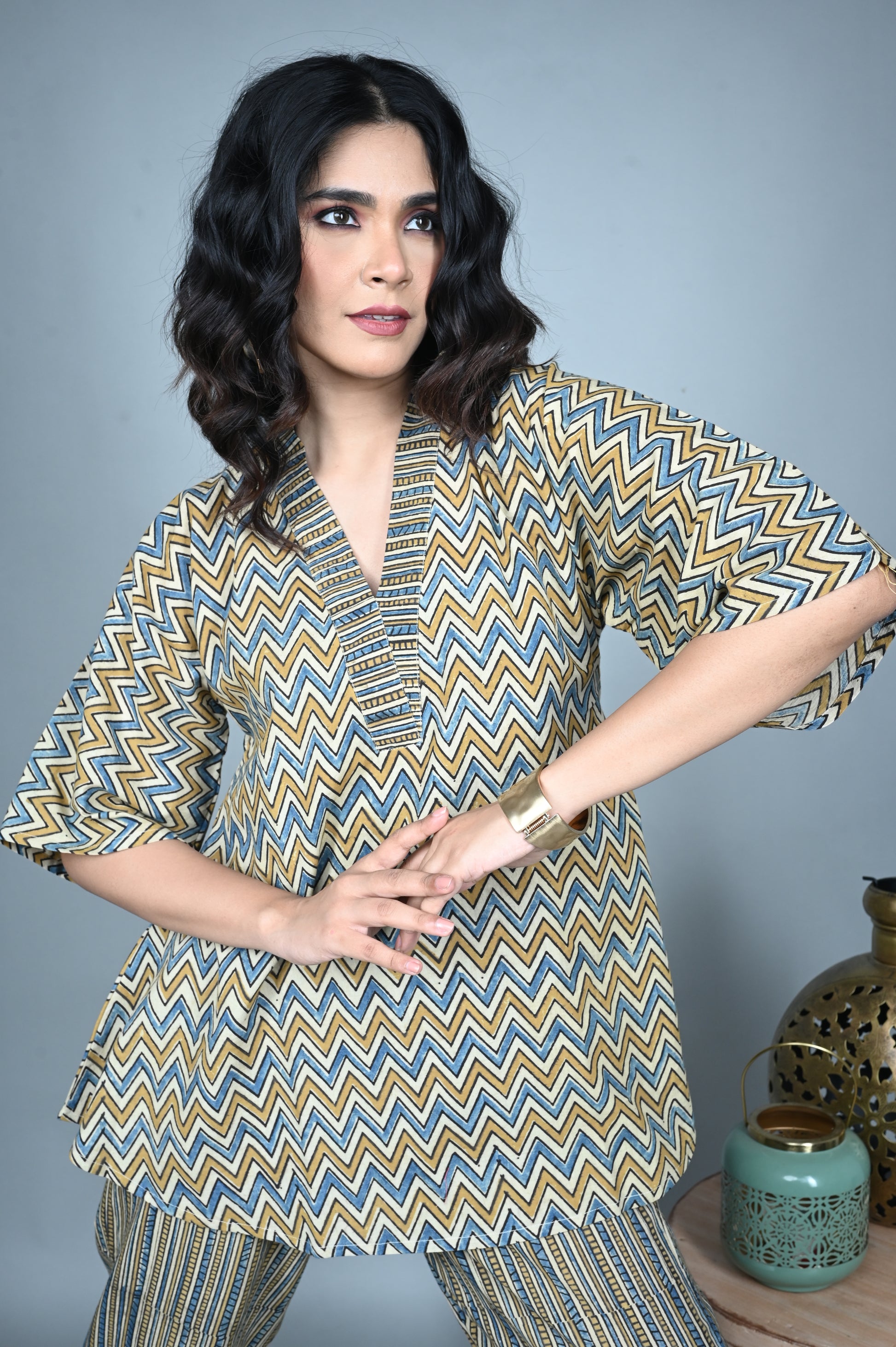 Ajrakh Zigzag Hand Block Printed Anti-Fit Top