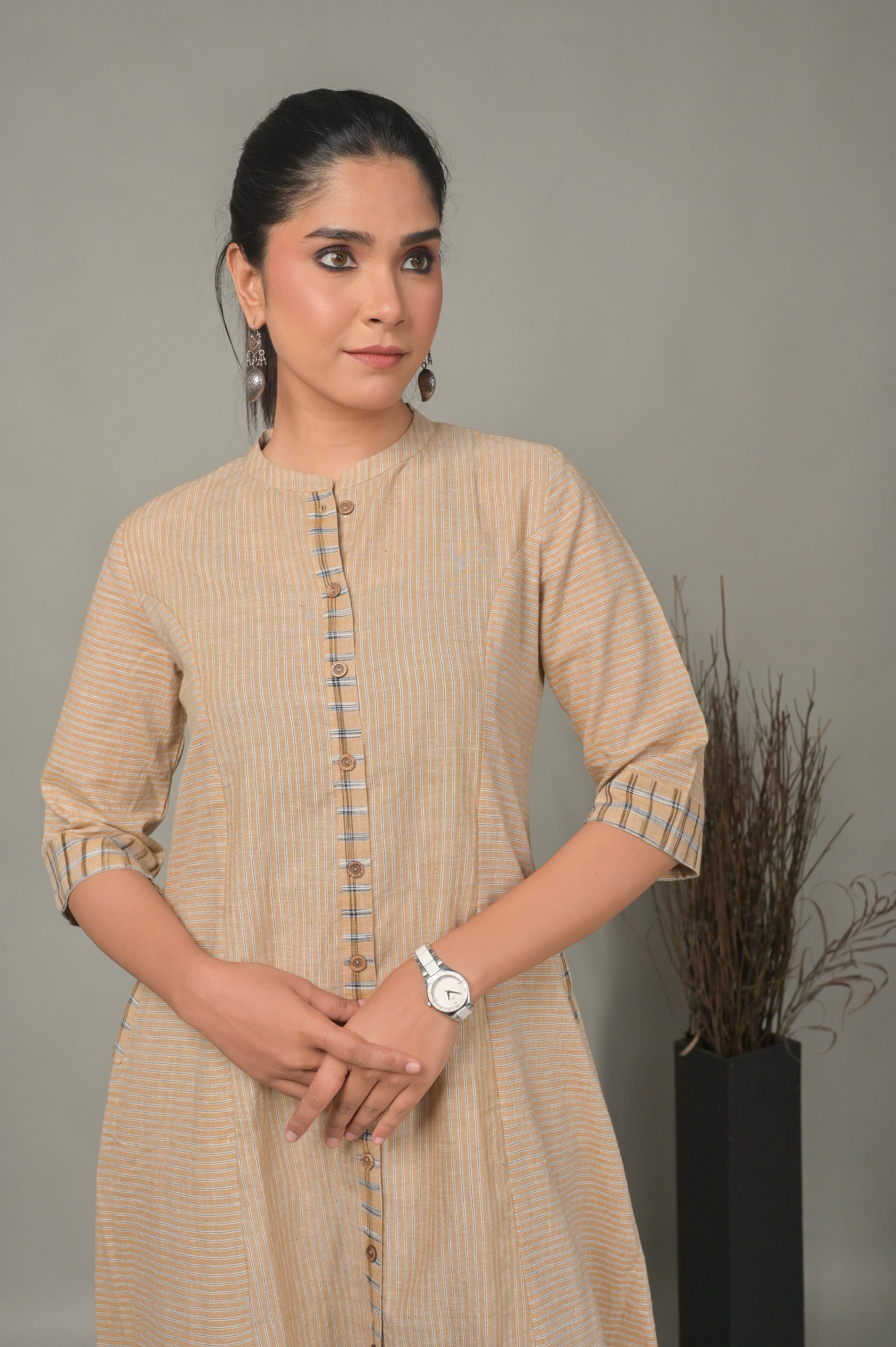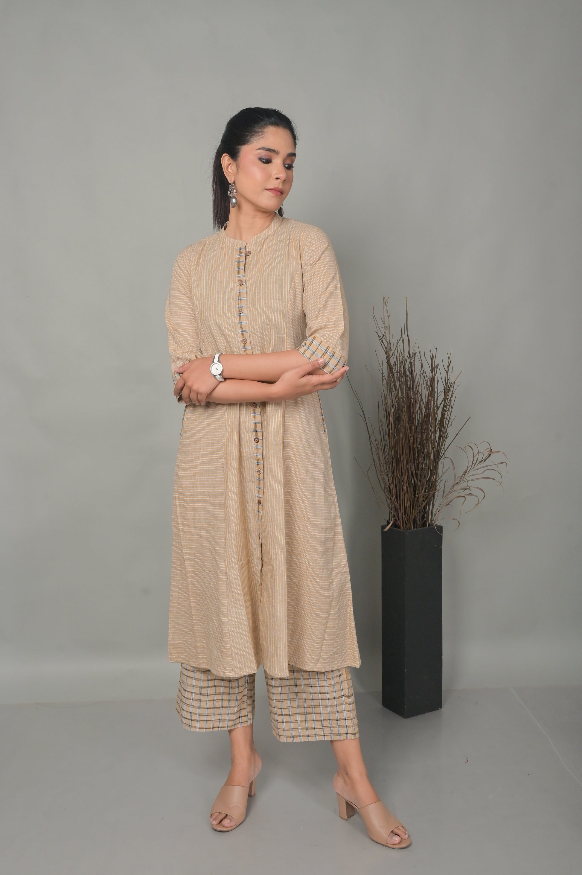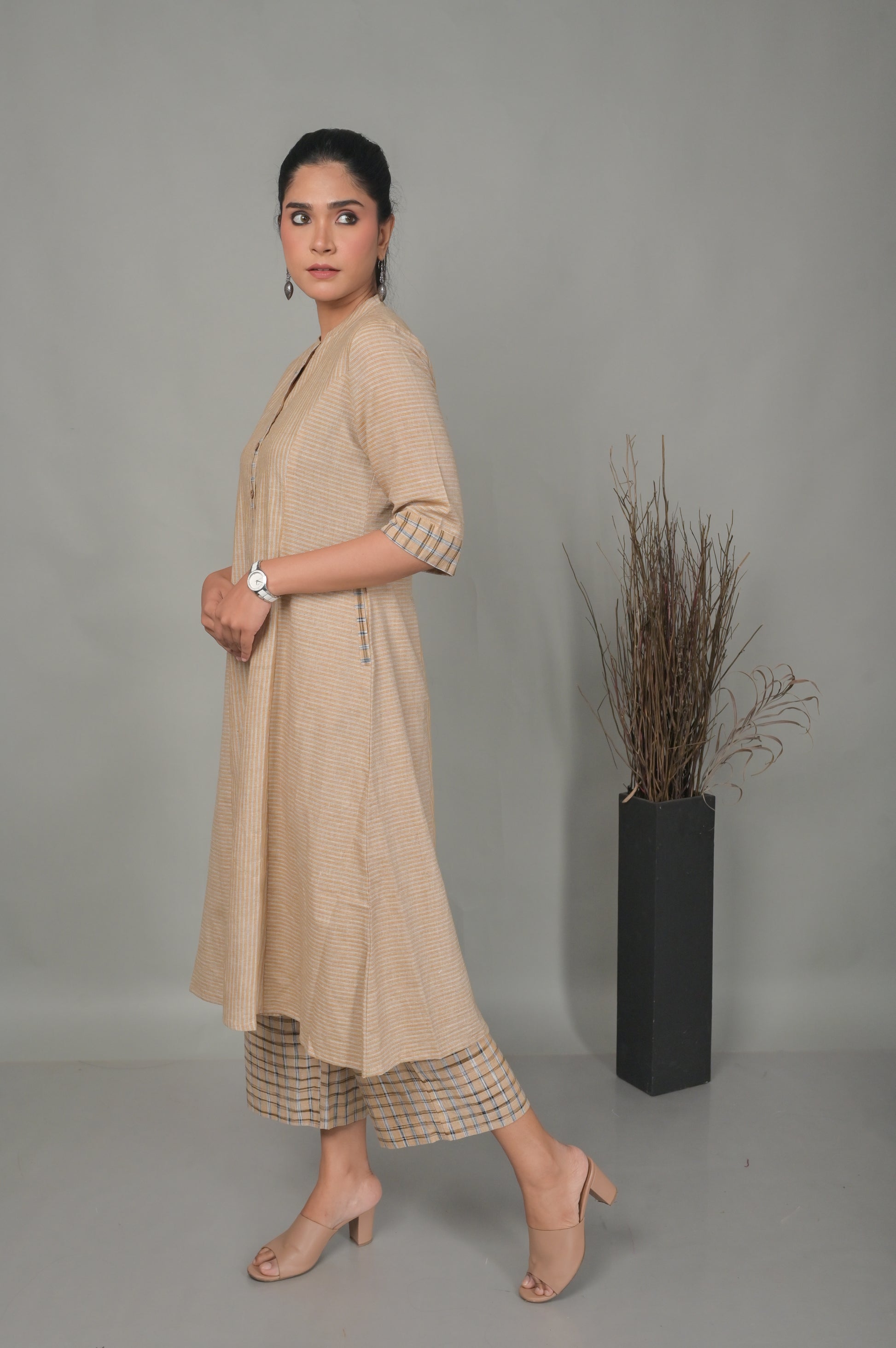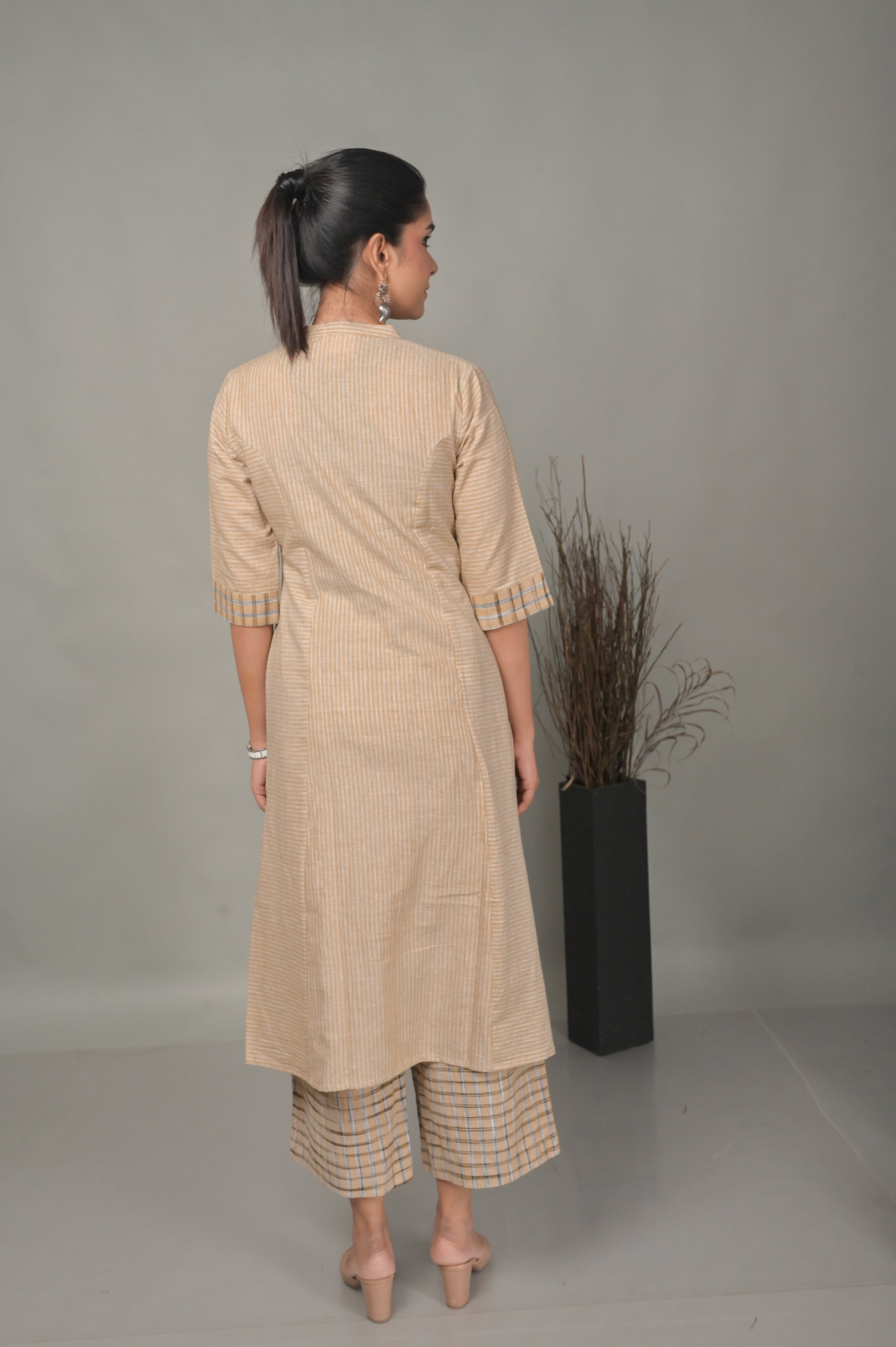 Beige Stripe Handwoven Co-ord Set (set of 2)