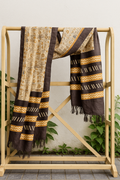 Crafted from soft tassar silk, this black dupatta is adorned with striking beige geometric patterns using traditional hand block printing. Lightweight and versatile, it pairs beautifully with a range of kurtas, adding a sophisticated artisanal touch to both festive and everyday ensembles.