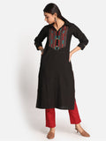 Experience the beauty of our black handwoven kurta, embellished with Kantha hand embroidery on the yoke. Ideal for both casual and formal events.