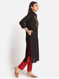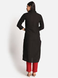 Black Handwoven Kurta with Hand Embroidery Detailing