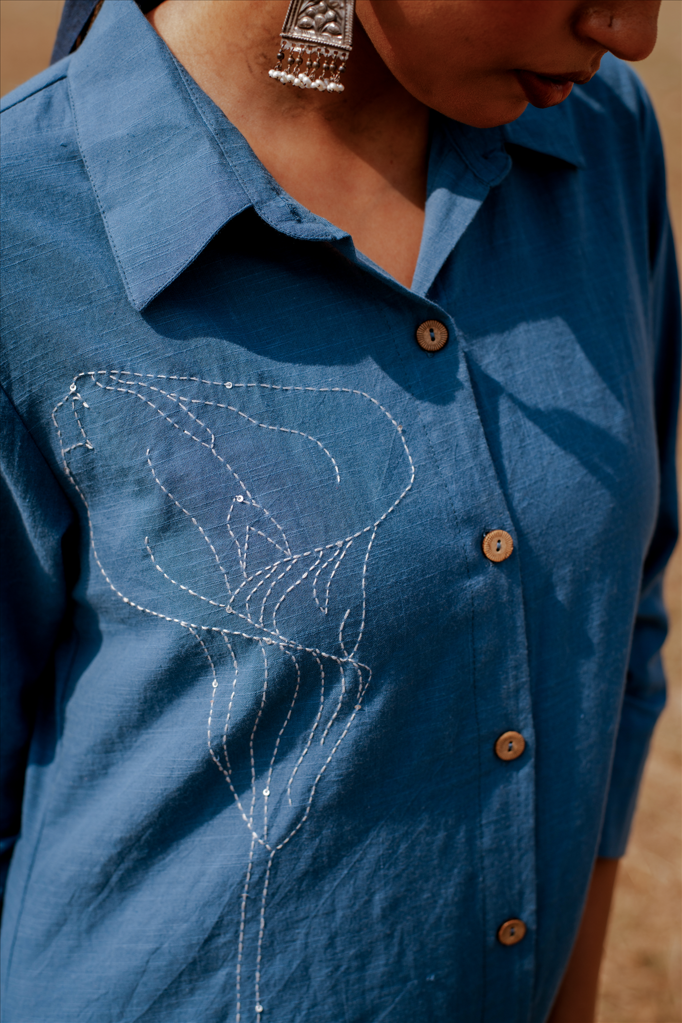 Blue Hand Embroidered Cotton Co-ord Set (set of 2)
