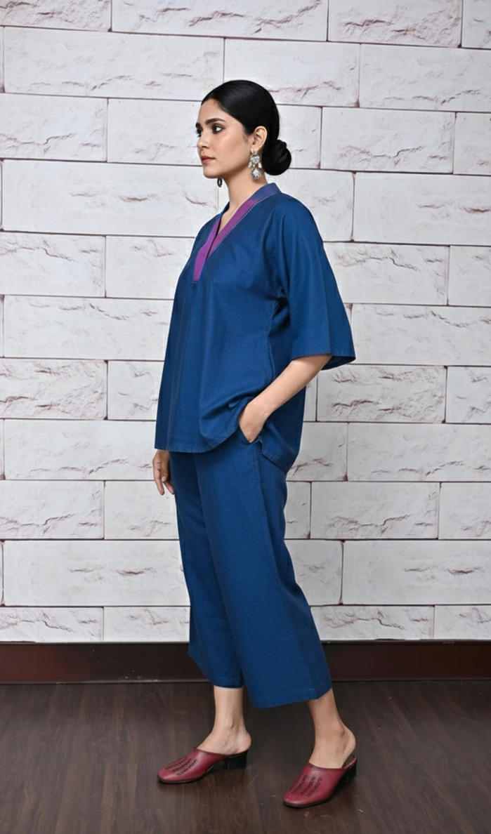Indigo Handloom Cotton Antifit Co-ord Set (set of 2)