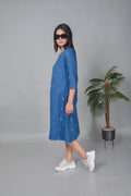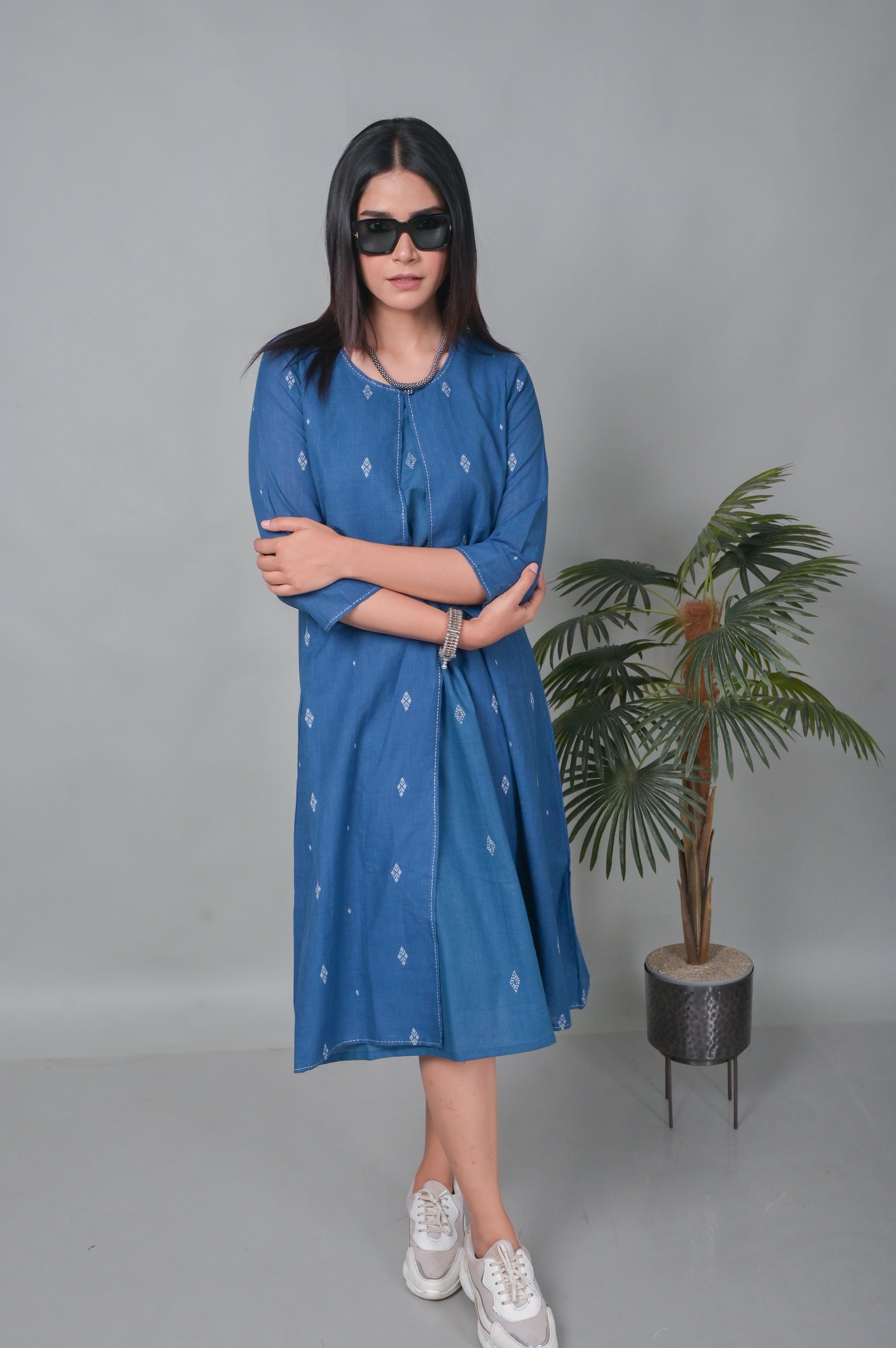 Handwoven Indigo Jamdani dress with a soft, airy texture