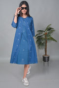 Blue Handwoven Geometric A-Line Kurta with Hand Embroidery Detailing