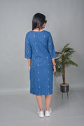 Blue Hand Block Printed Kurta with Kantha Hand Embroidery