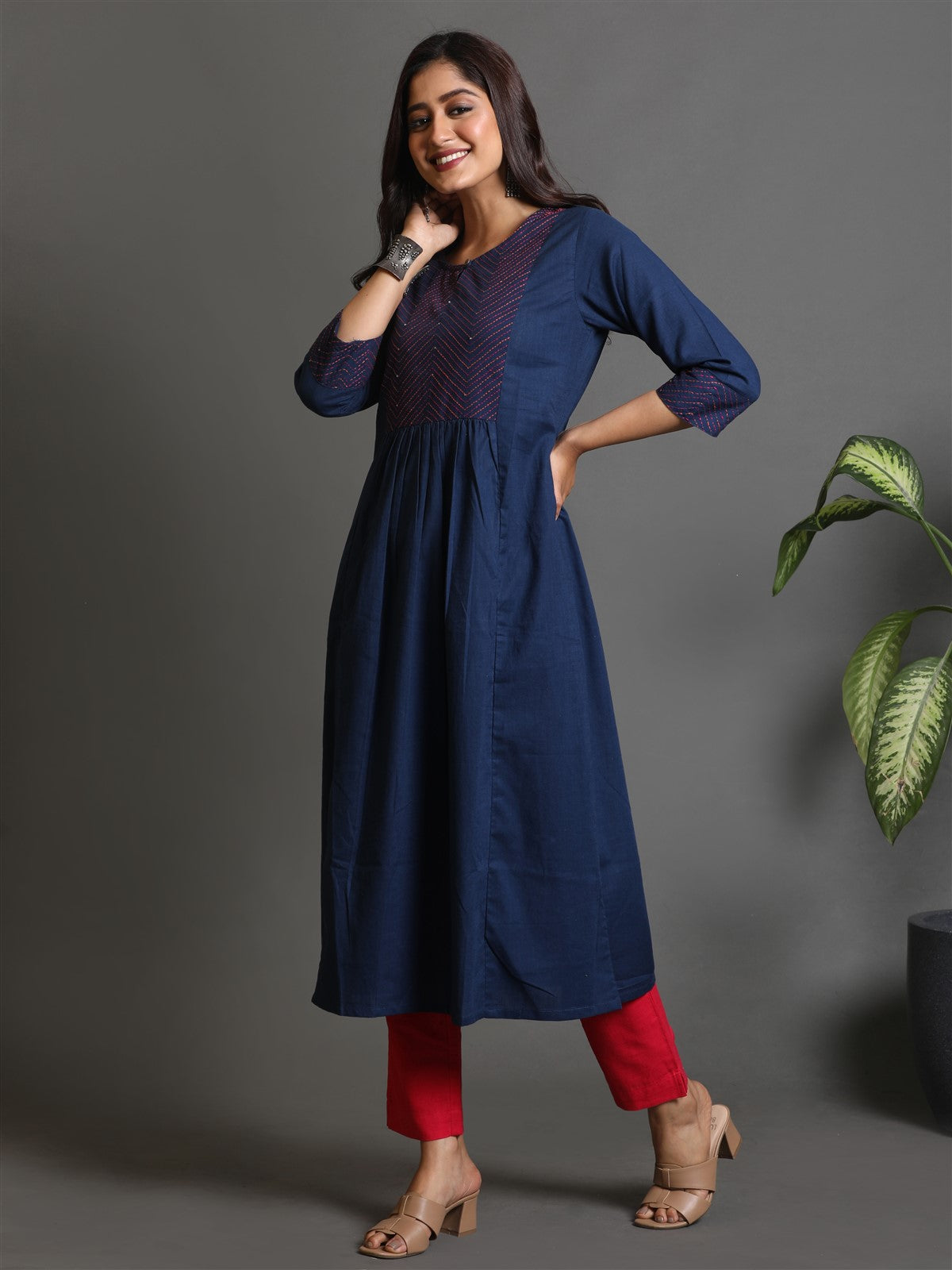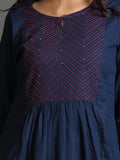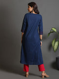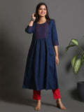 Indigo Cotton Kurta With Hand Embroidered Yoke