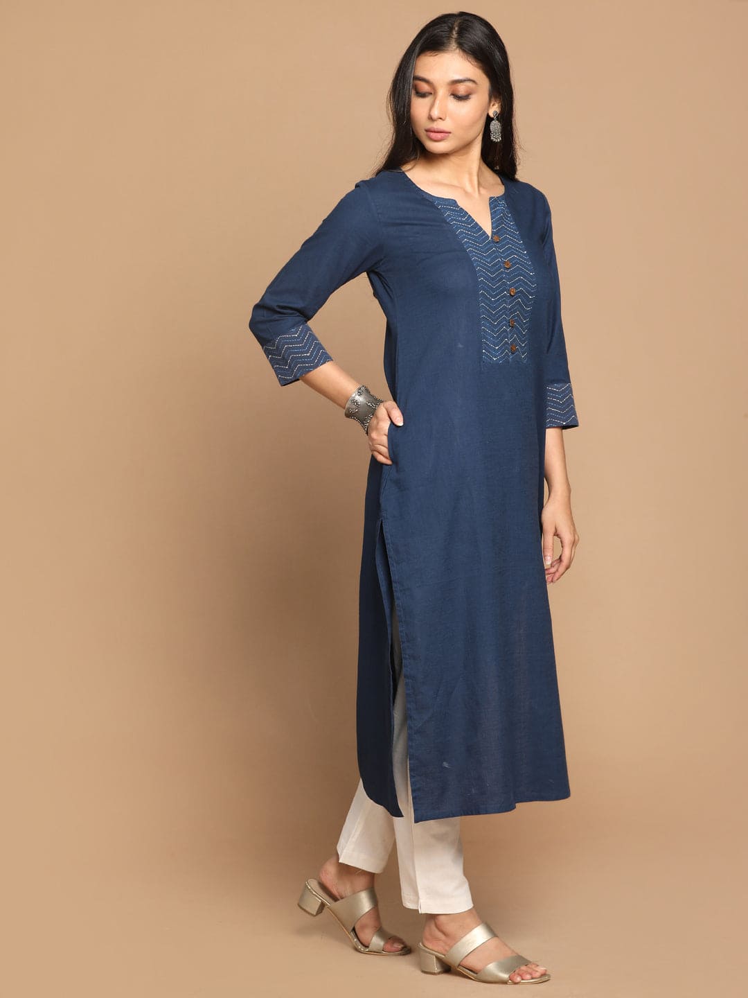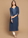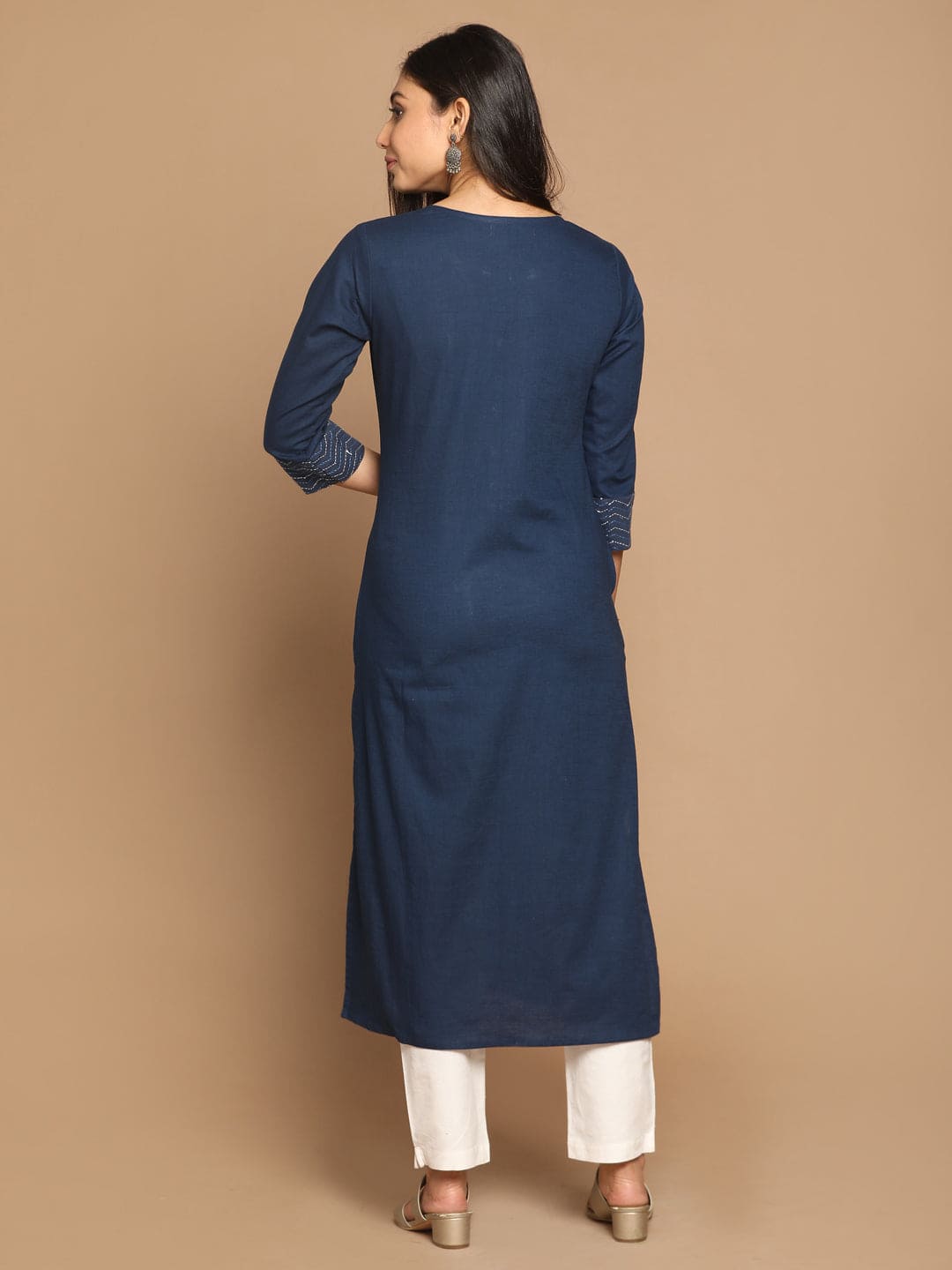 Indigo Straight Cut Kurta with Hand Embroidery Detailing