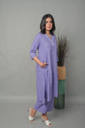 Lavender A-Line Kurta with Hand Embroidery detailing