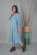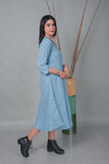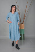 Elevate your everyday style with this Light Blue Jamdani Handwoven A-line Bias Dress. Crafted from soft, breathable cotton, it features delicate handwoven motifs and a flattering bias-cut silhouette. Ethically made and perfect for summer.