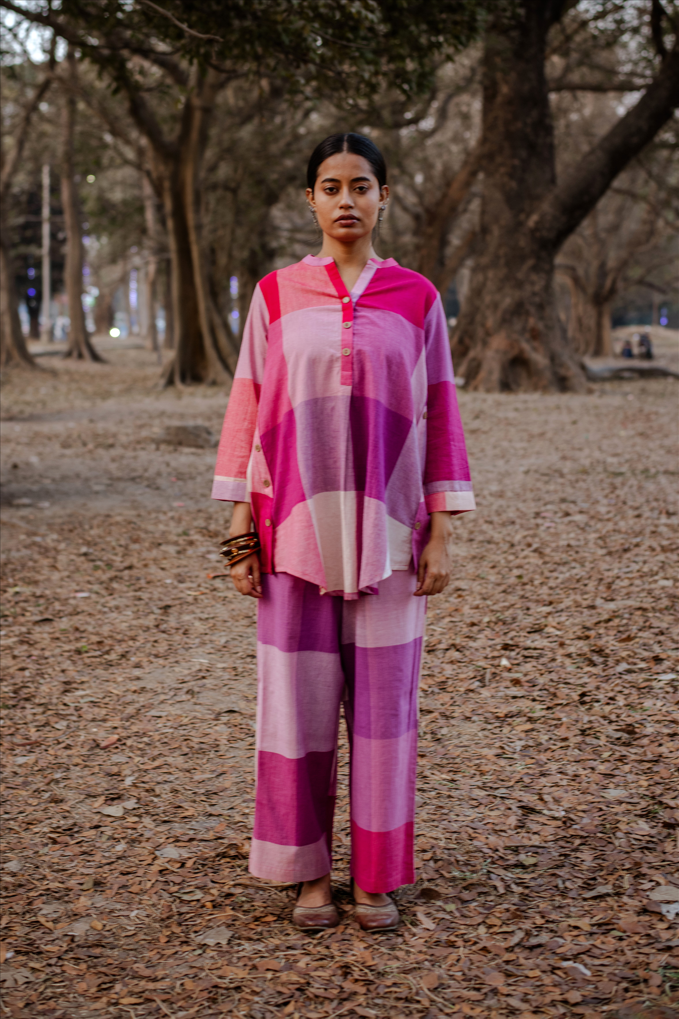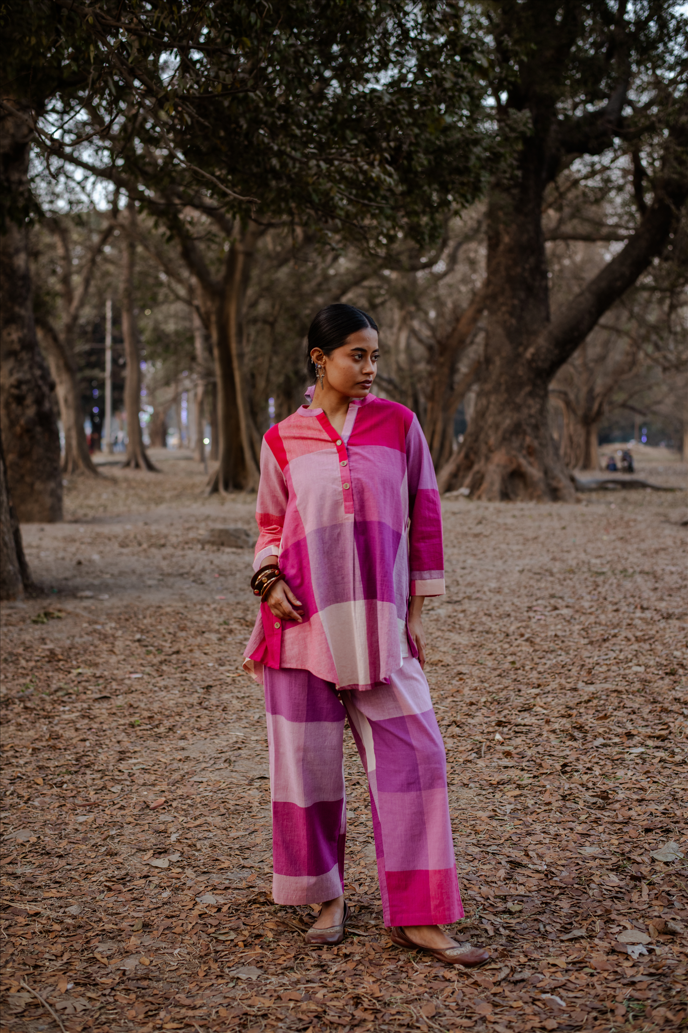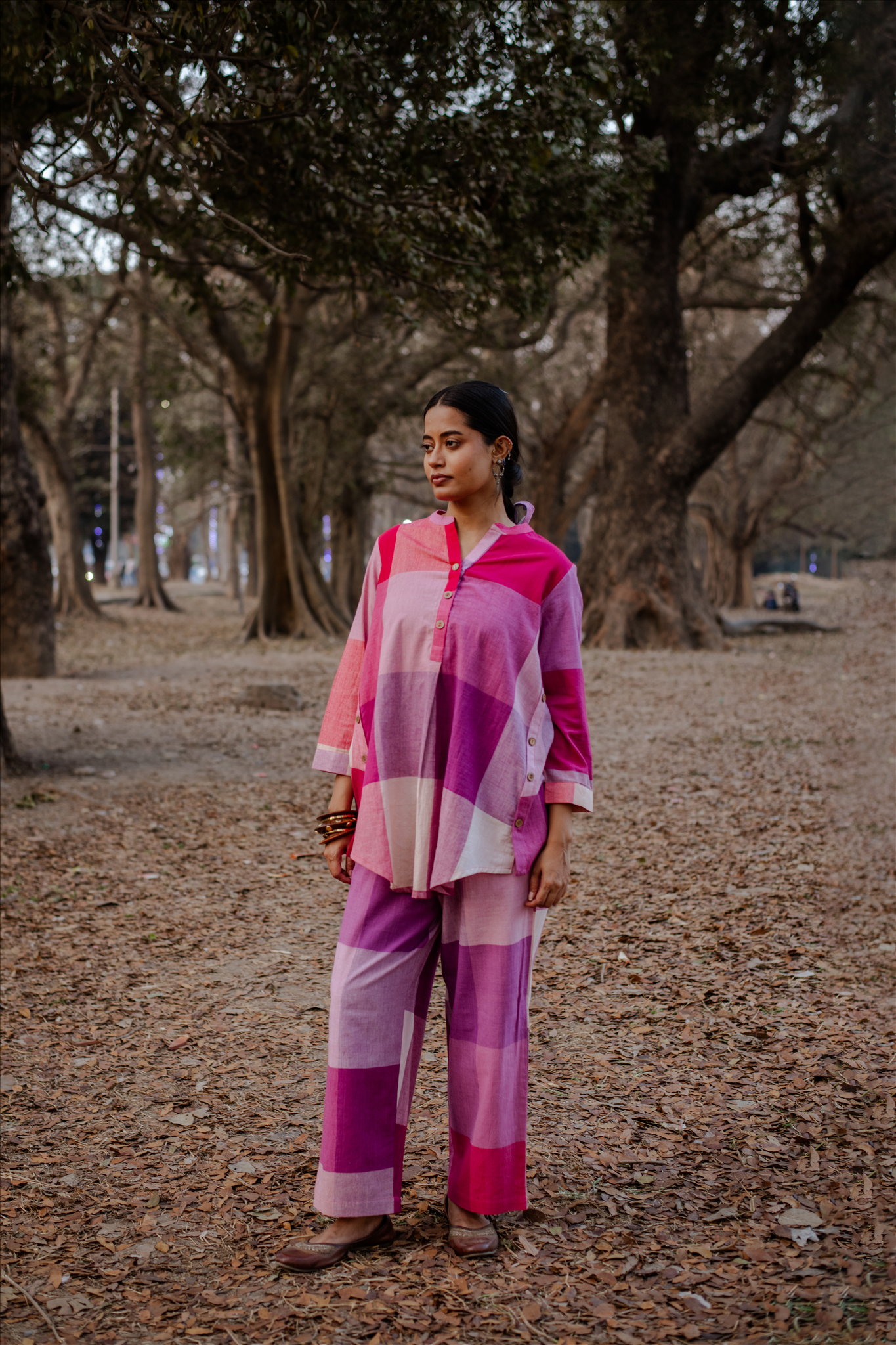 This charming pink-white checked top is handwoven with care. The lightweight, breathable khadi cotton fabric ensures comfort while maintaining a refined silhouette. Paired with matching handwoven pants, this set celebrates artisanal craftsmanship and effortless style, perfect for both casual gatherings and festive moments.