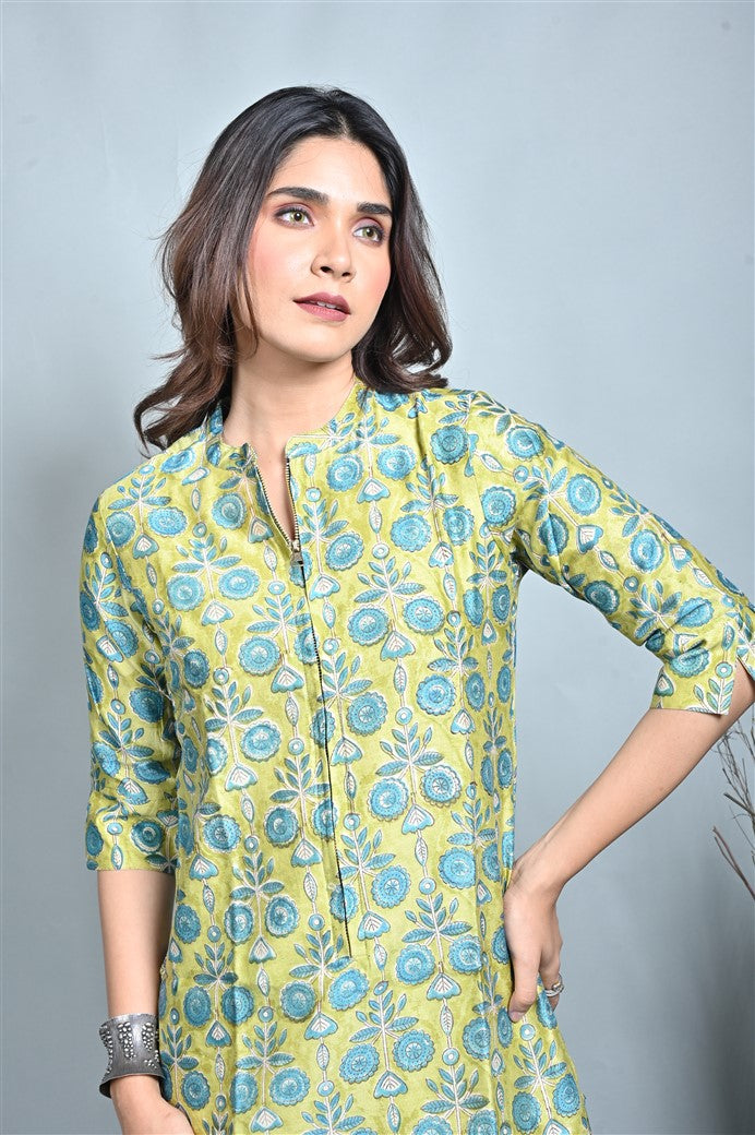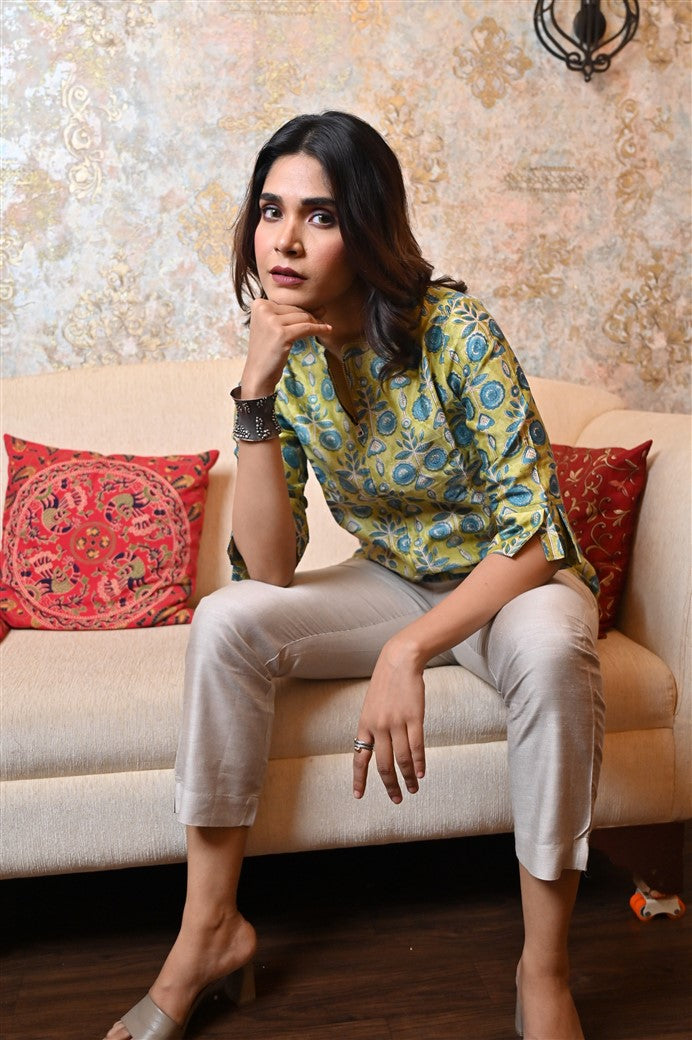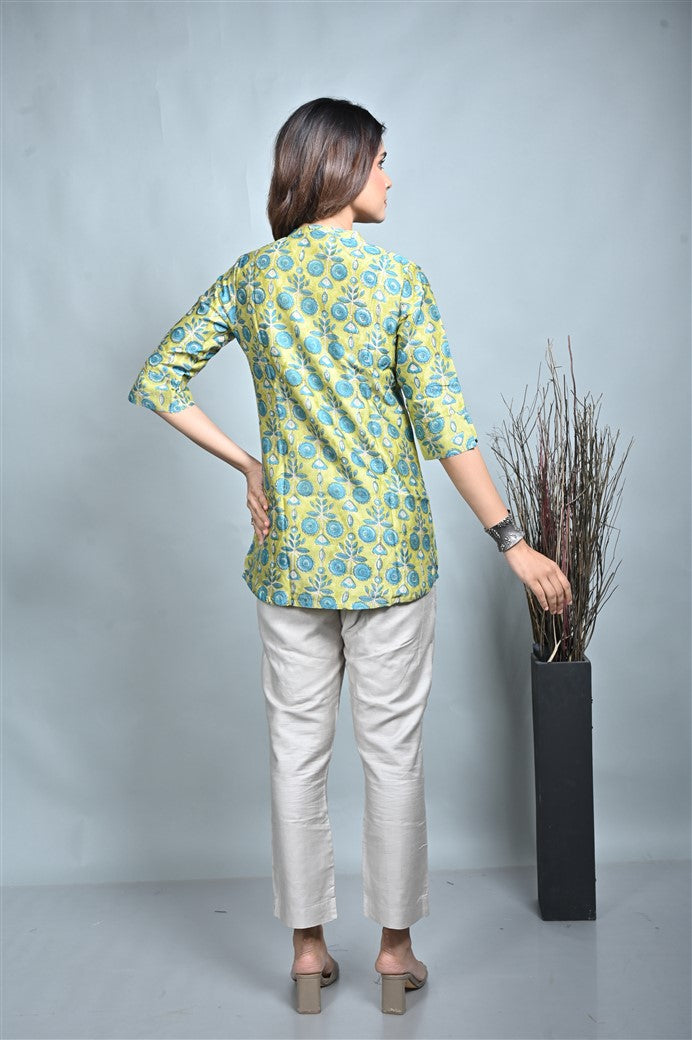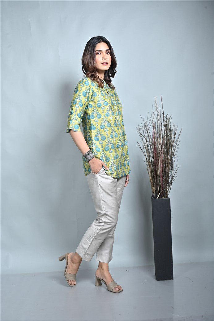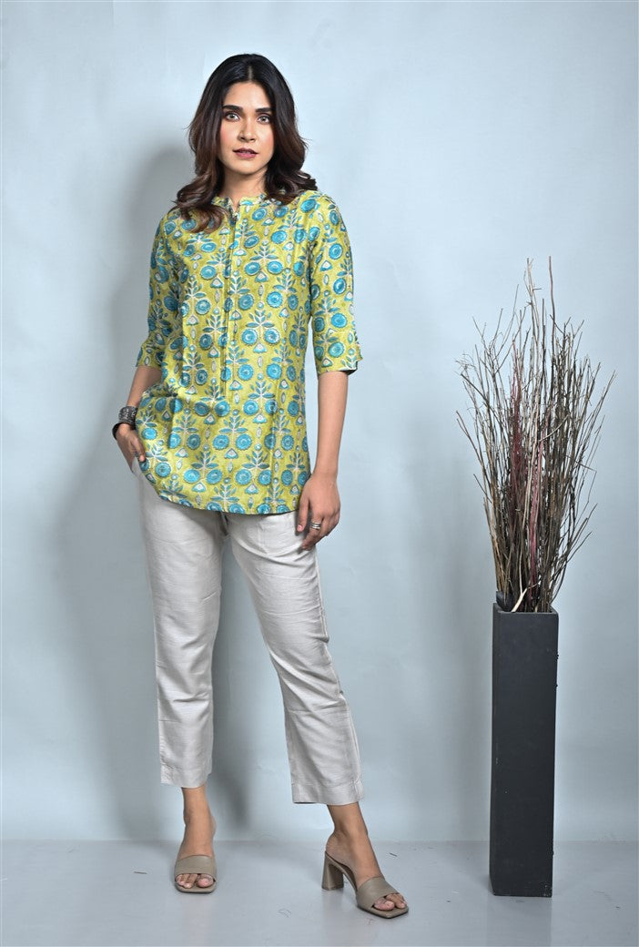 Elevate your style with our green handwoven crop top, adorned with beautiful hand embroidery. A...