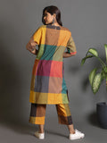 Multicolor Checks Khadi Antifit Co-Ord Set With Kantha Detailing