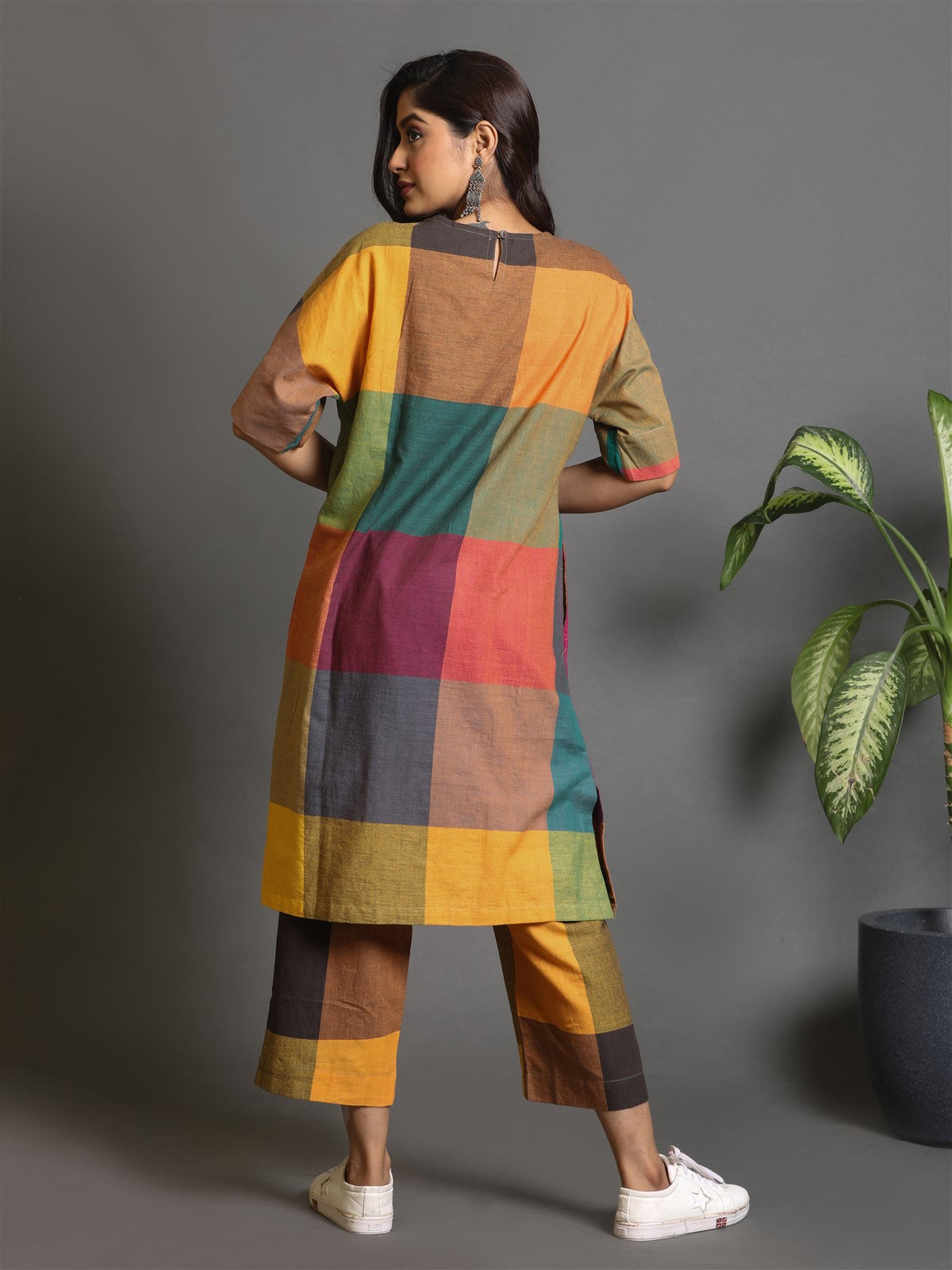 The Multicolor Checks Handwoven Antifit Co-Ord Set is the most coveted piece that you can go for. The style and the design will leave a last impression on you making you go back to Earthwear India for more!