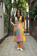 Multicolour Checks Handwoven Flared Cotton Pant