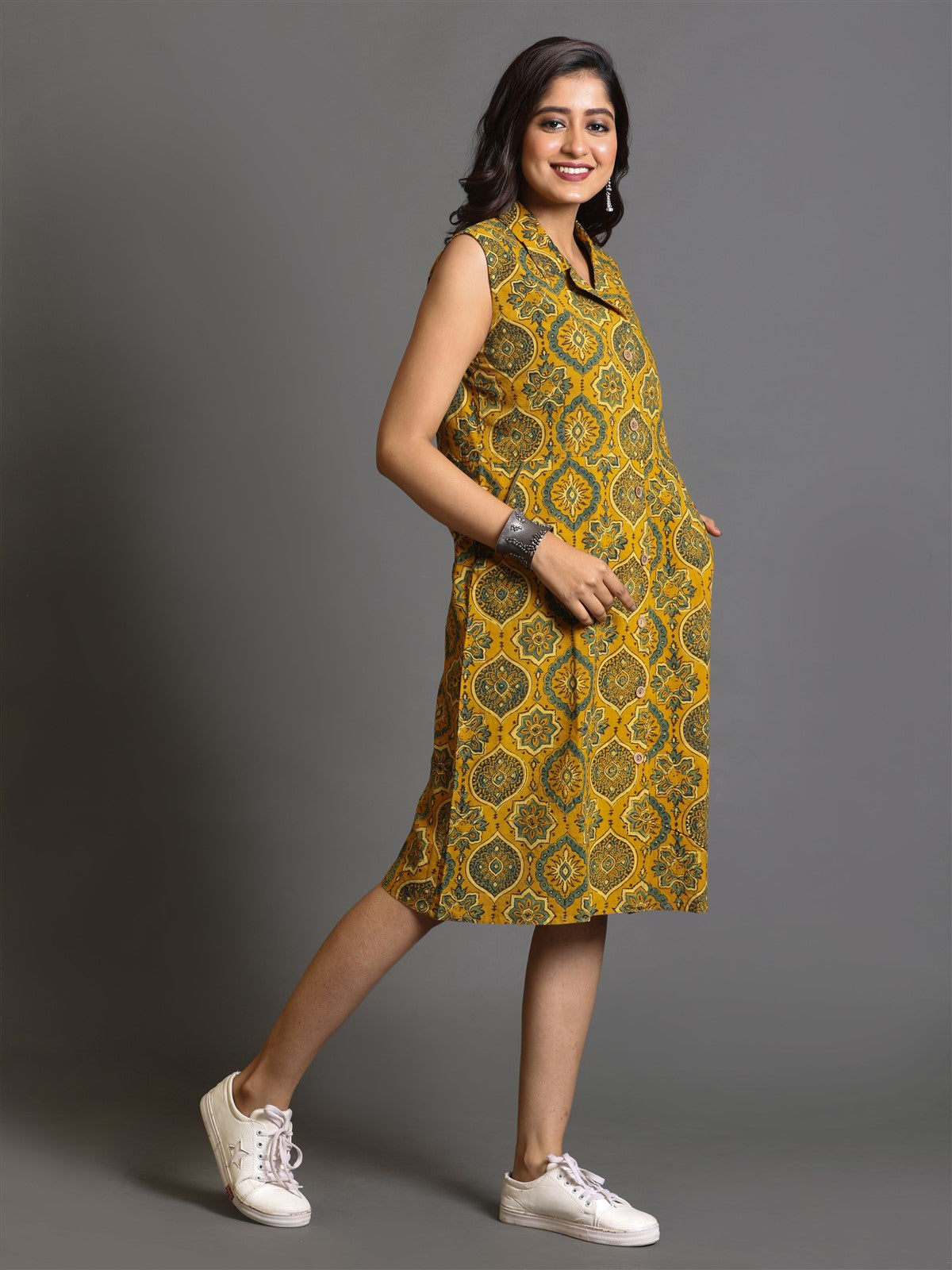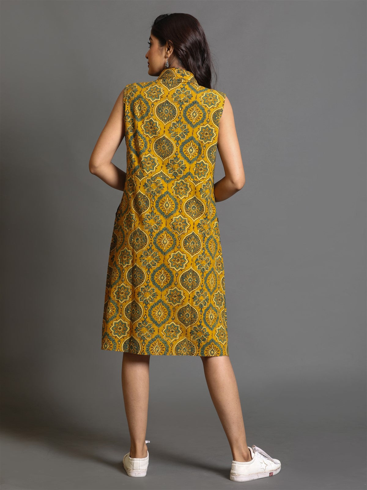 Mustard Ajrakh Shirt Collar Dress
