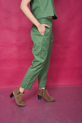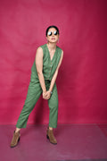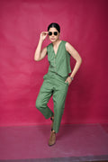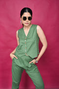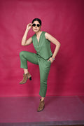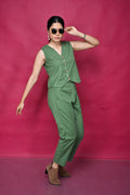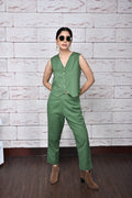 Step into effortless sophistication with this Olive Cotton Sleeveless Co-ord Set. Crafted from breathable cotton, this two-piece ensemble features a sleeveless top and relaxed bottoms, perfect for warm-weather dressing. The subtle yet intricate Kantha hand embroidery adds a refined, artisanal touch, making it ideal for both casual days and elevated evenings