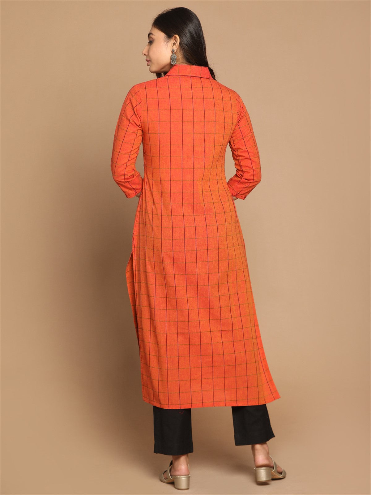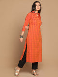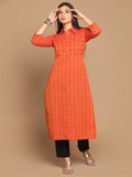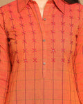 Fire Checks Shirt Collar Cotton Kurta with Hand Embroidery Detailing