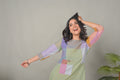 Pastel Green Handwoven Half & Half Dress with Hand Embroidery