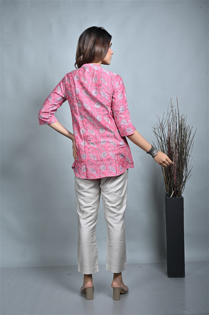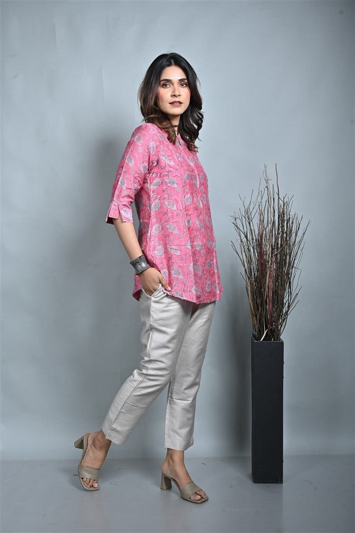 Pink Chanderi Block Print Tunic