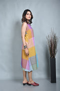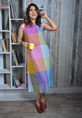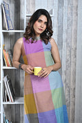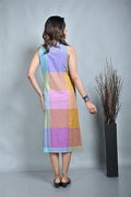 Purple-Blue Pastel Checks Handwoven Halter-Neck Long Dress