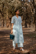 A powder blue cotton co-ord set crafted for lightness and ease. The sleeveless kurta falls...