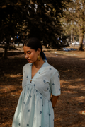 Powder Blue Cotton Woven Buti Gathers Co-ord Set (set of 2)