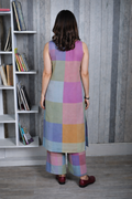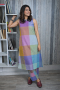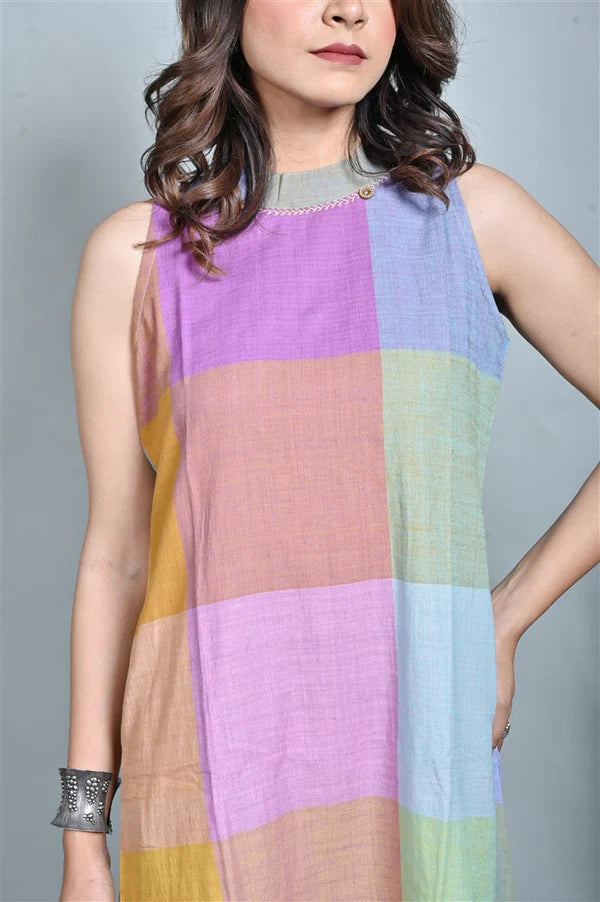 Purple-Blue Pastel Checks Handloom Cotton Halter Neck Kurta Set (set of 2)