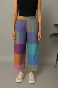 Purple-Blue Pastel Checks Kurta and Purple-Blue Pastel Checks Flared Cotton Pants