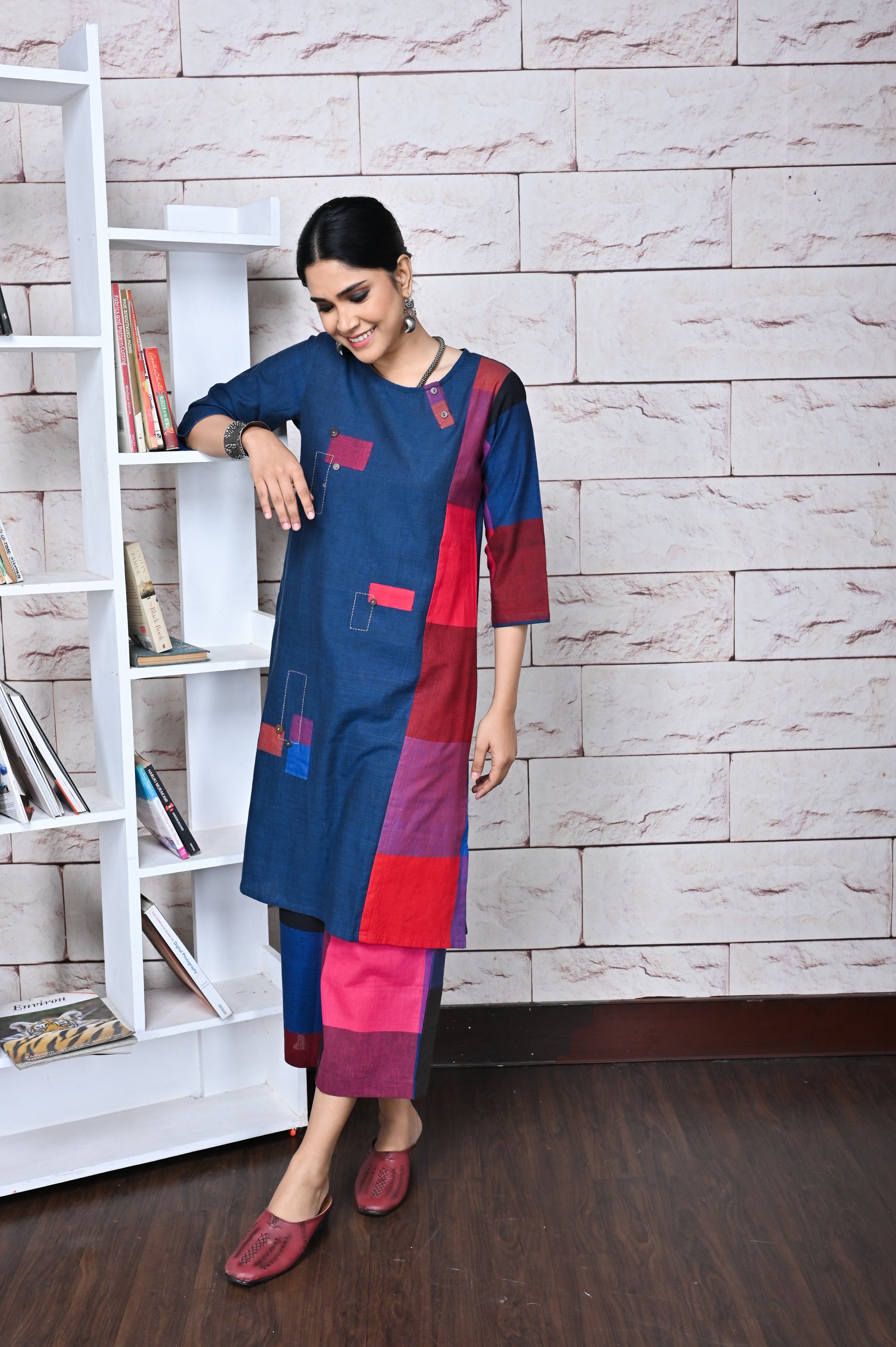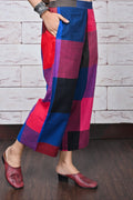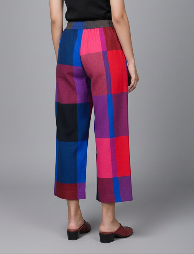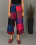 Red-Blue Checks Handwoven Cotton Flared Pants