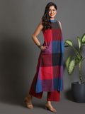Red-Blue Checks Handwoven Cotton Flared Pants