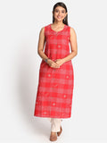 Red Checks Cotton Hand Embroidered A Line Sleeveless Dress. The dress comes with a sleeve attached so you can add one if needed!