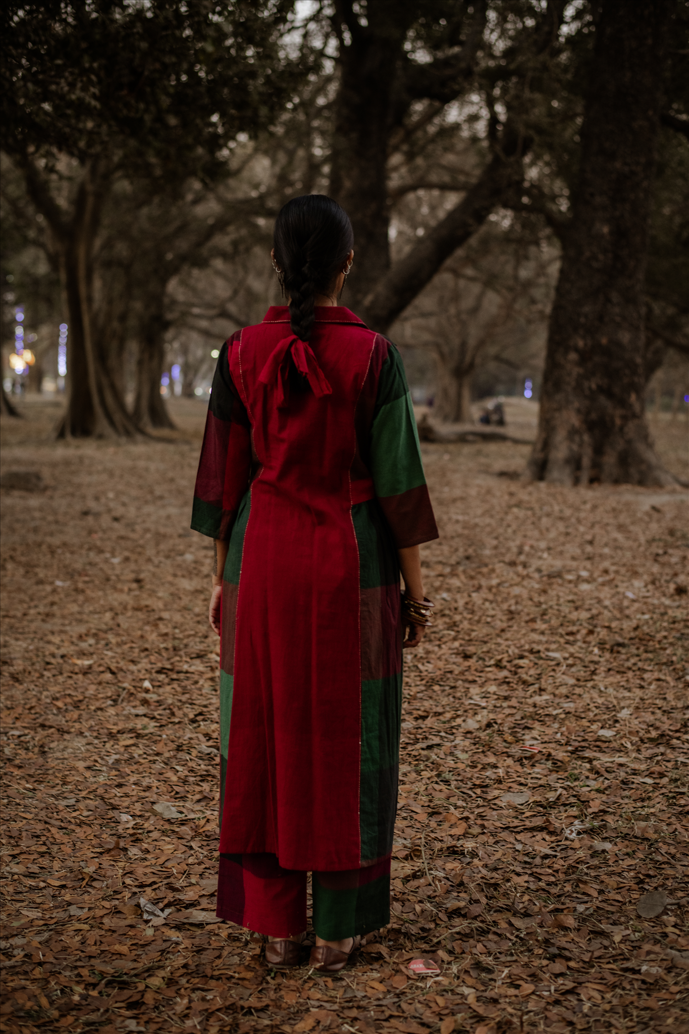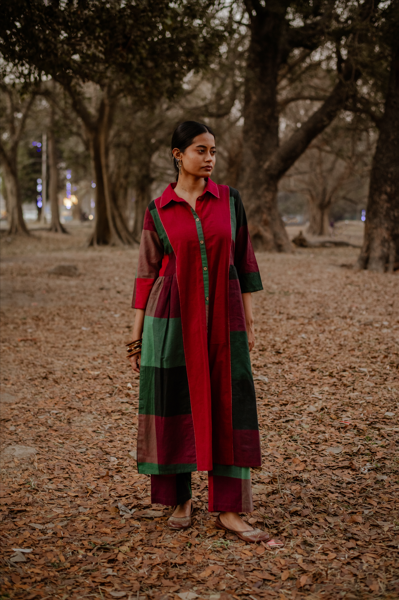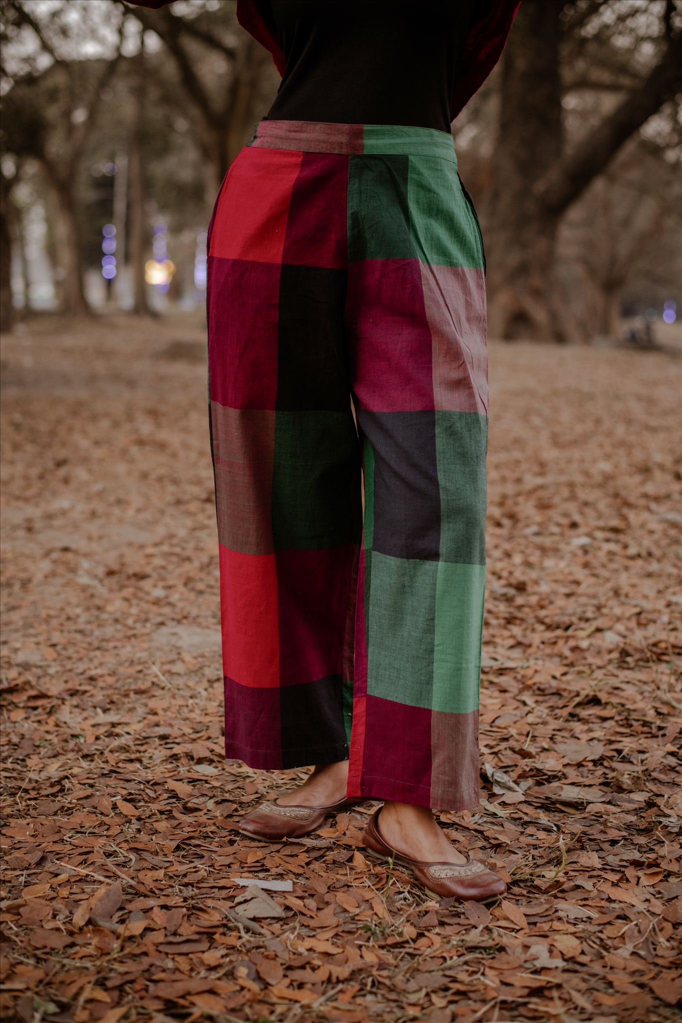 Red-Green Checks Handloom Cotton Flared Pants