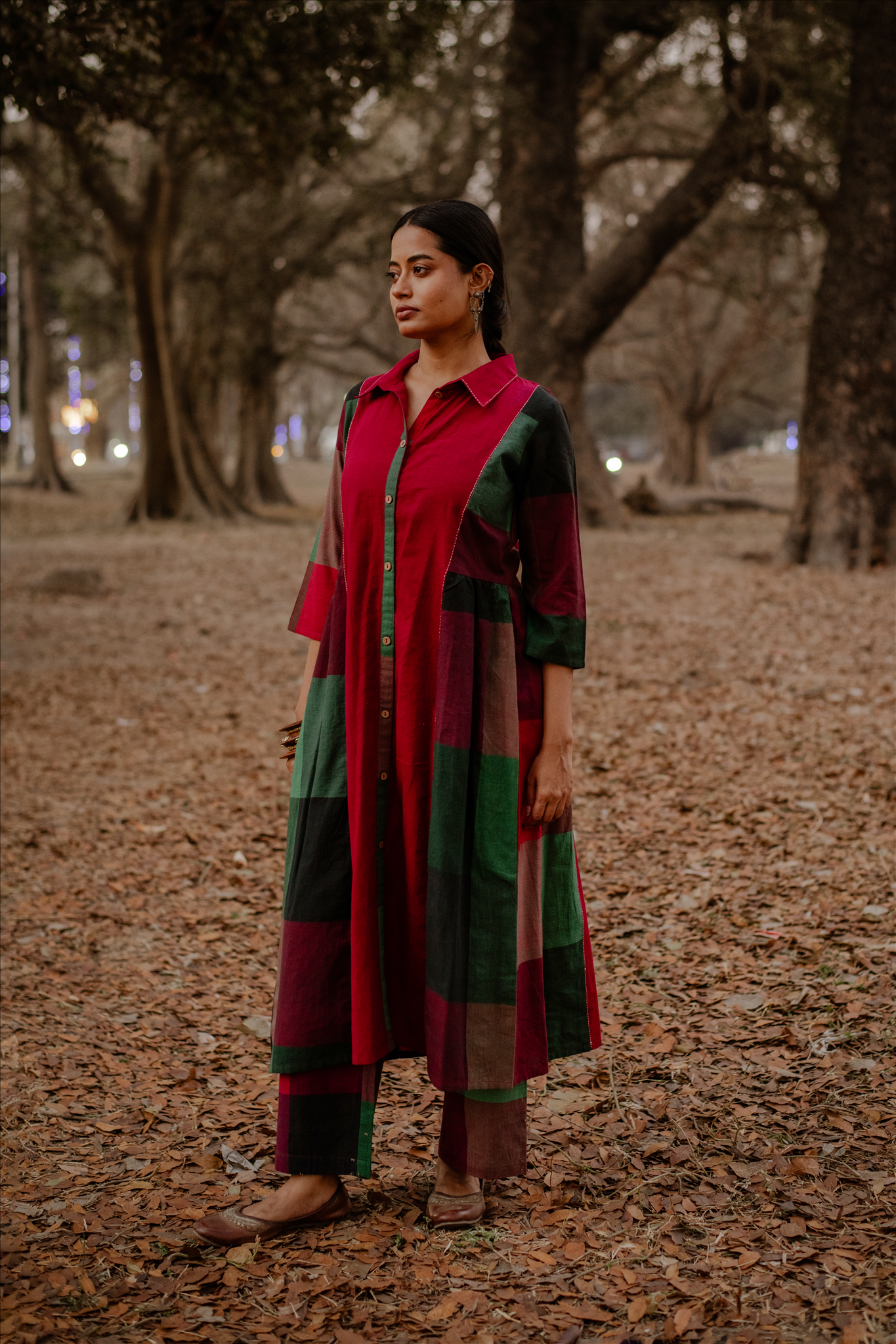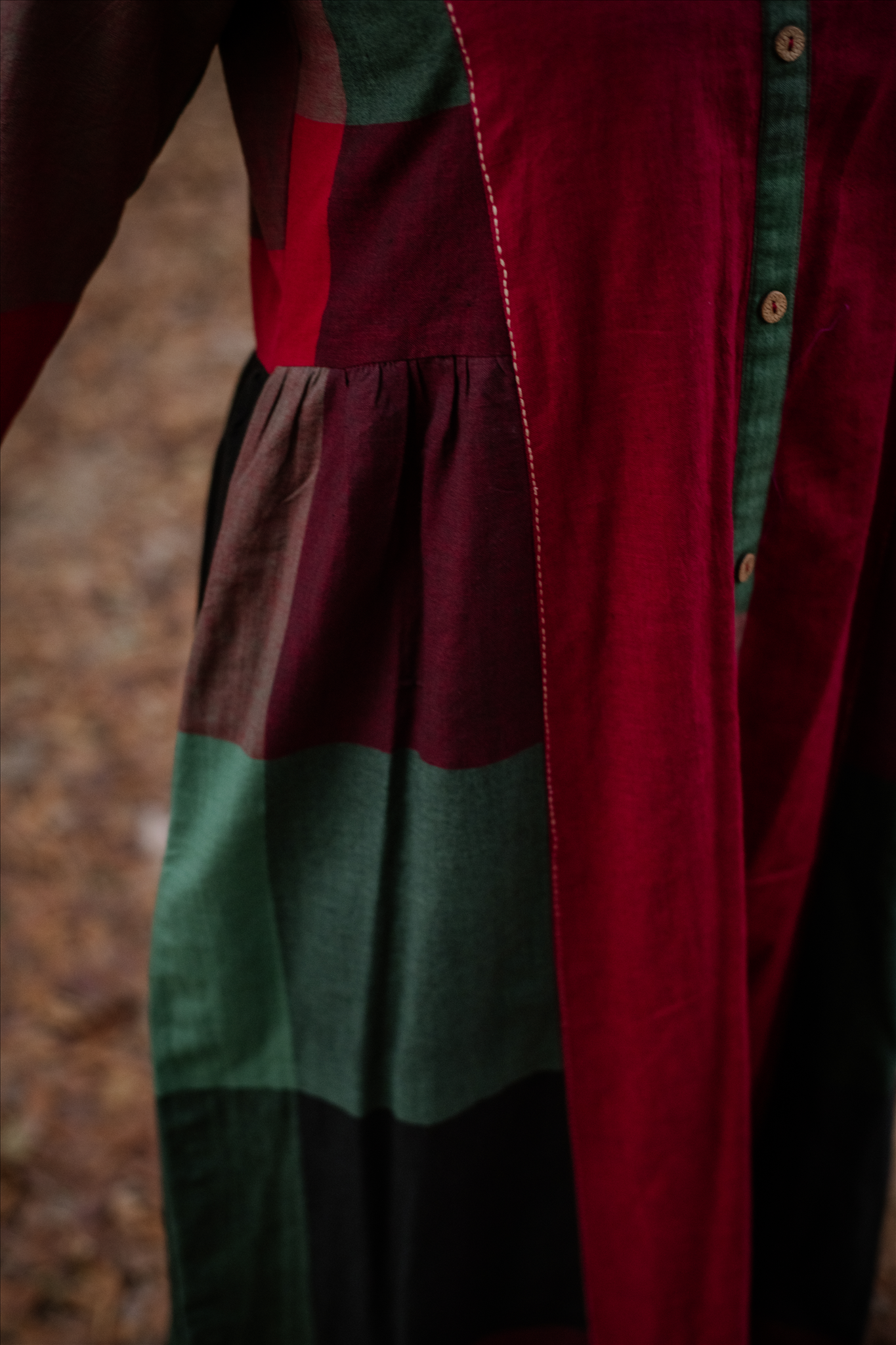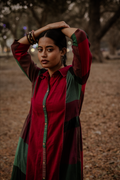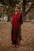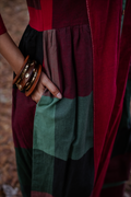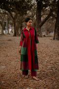 Embrace timeless elegance with this Red-Green Handwoven Long Gather Dress, featuring a flowy silhouette for effortless grace. Enhanced with intricate Kantha hand embroidery, this artisanal piece blends tradition with contemporary charm.