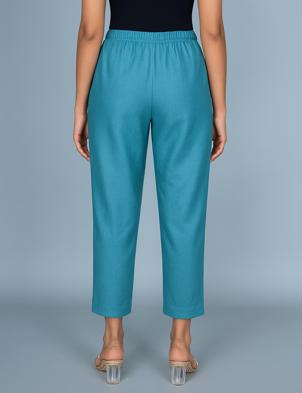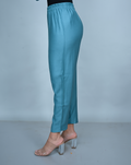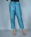 Teal Silk Slub Dress with Hand Embroidery Detailing