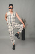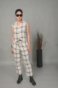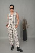 White Checkered Sleeveless Top with Hand Embroidered Butis Co-ord Set (set of 2)