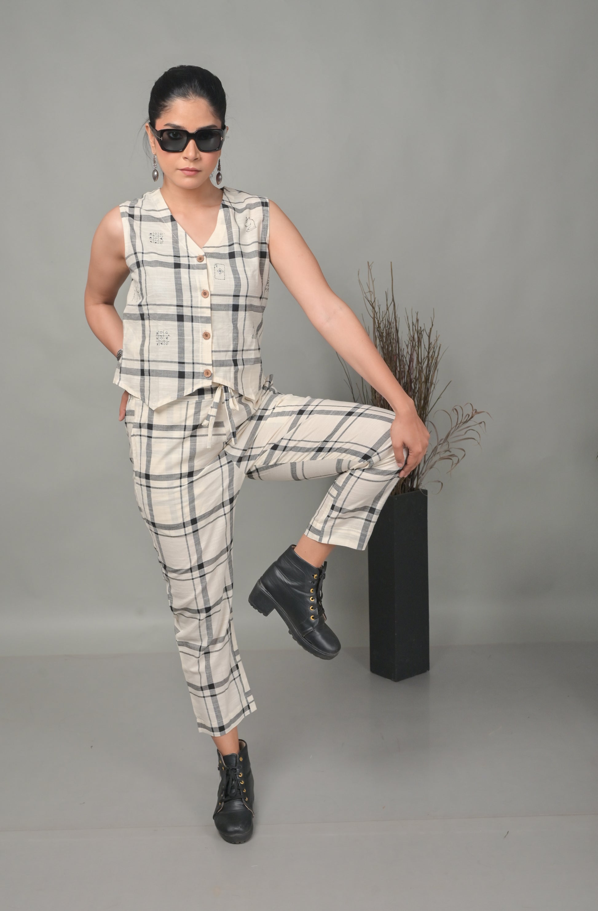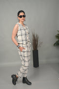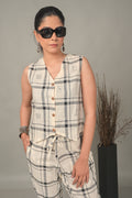Black checkered sleeveless co-ord set crafted from 100% breathable cotton