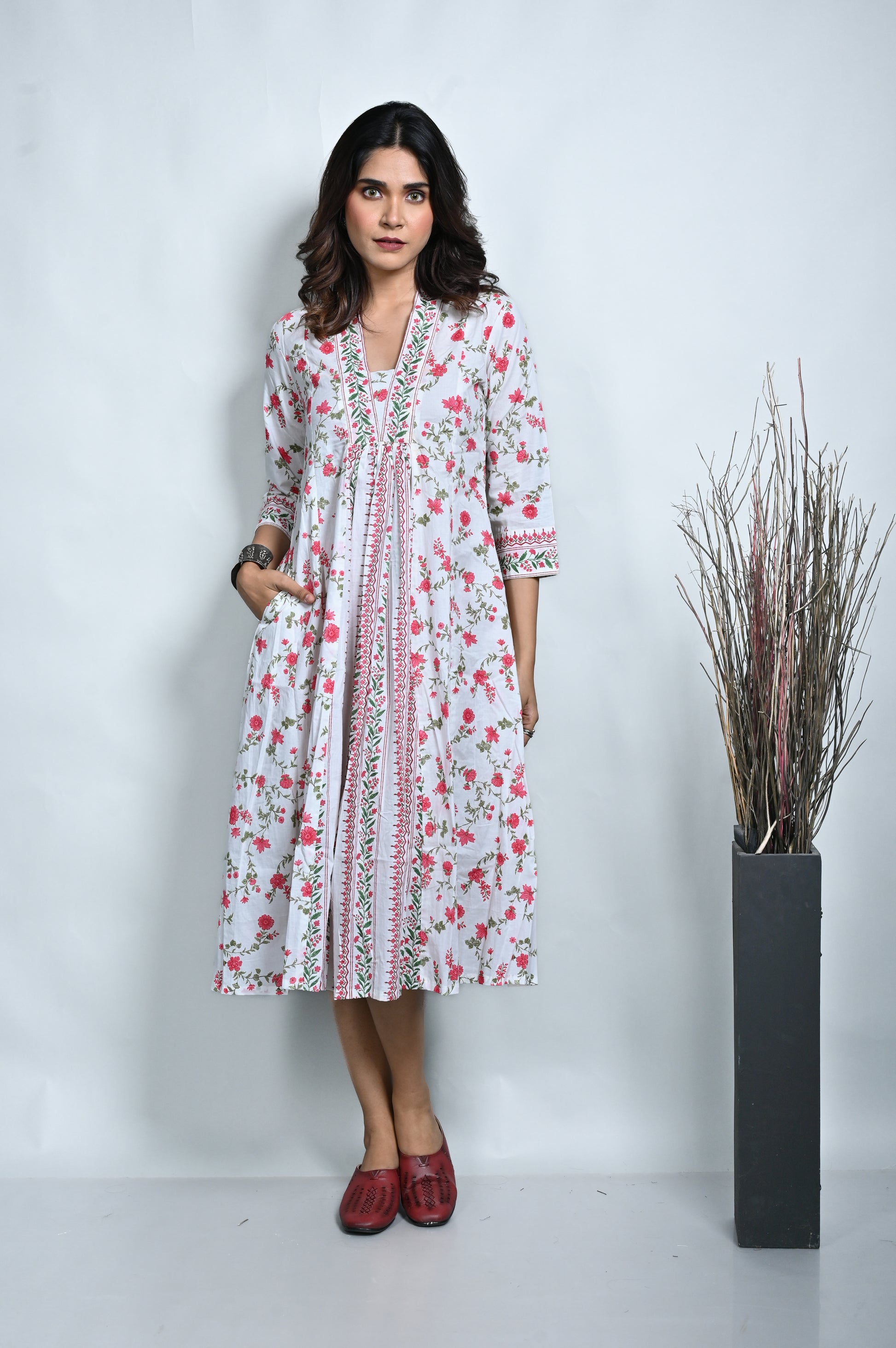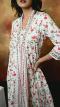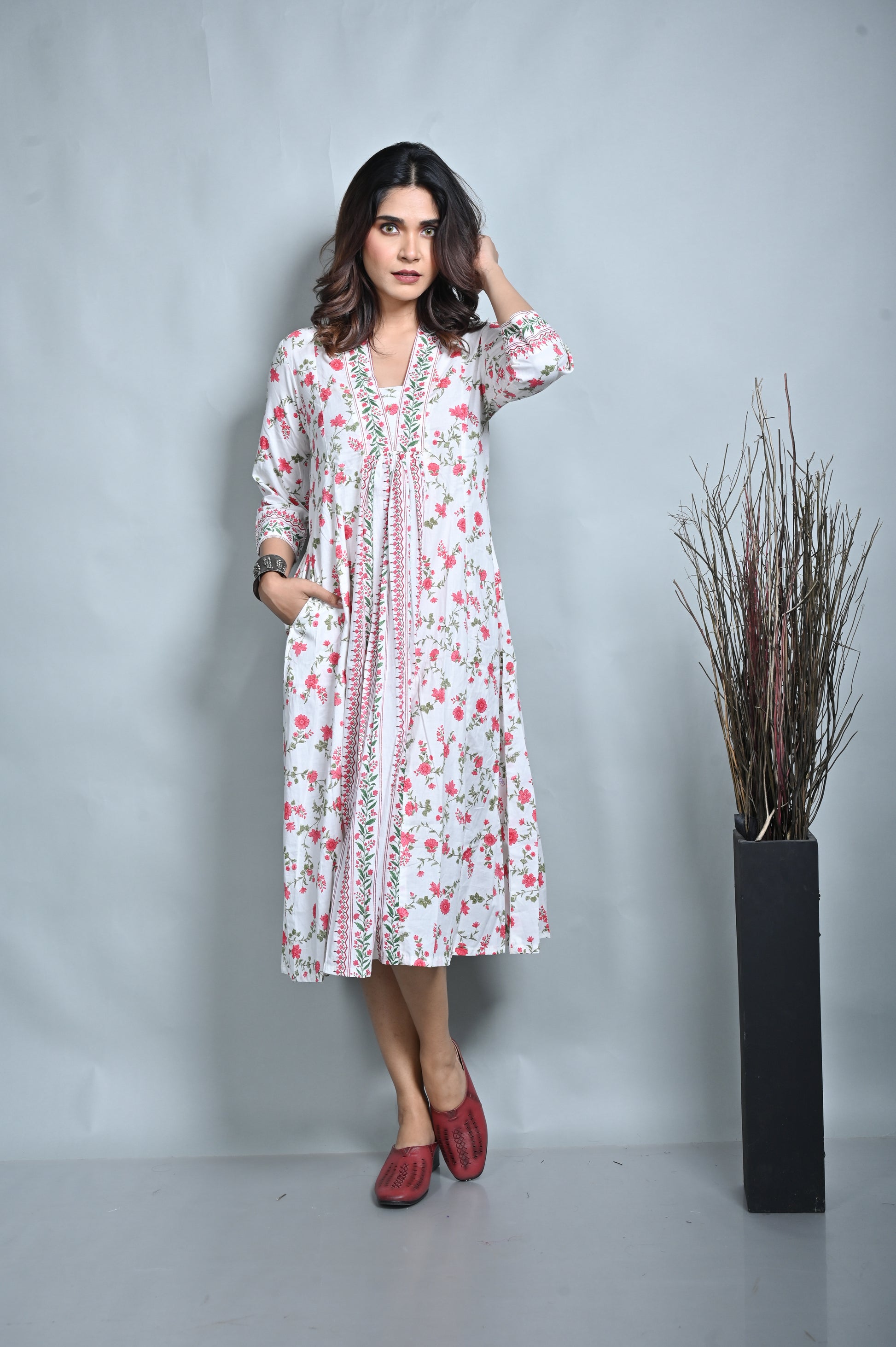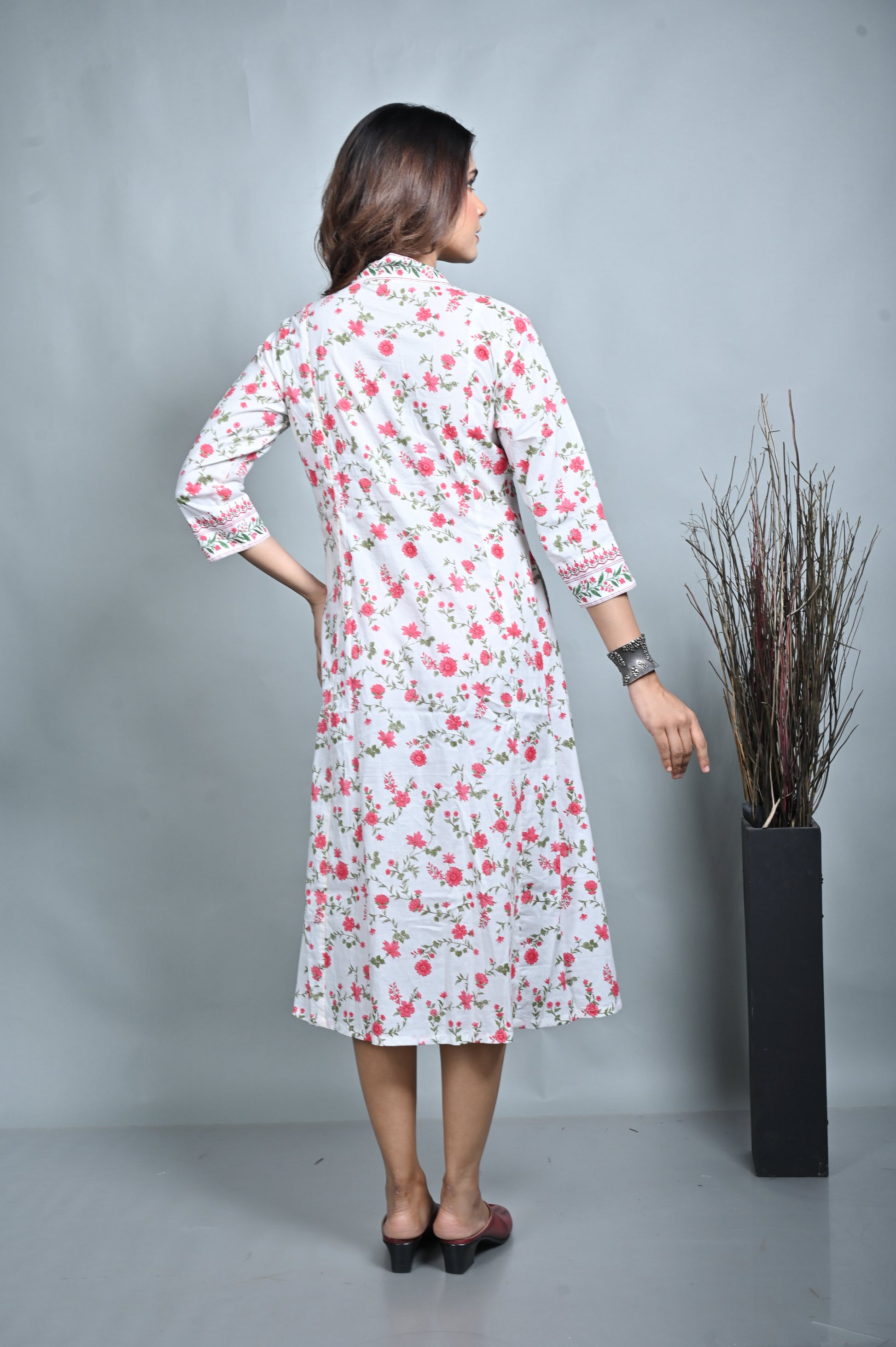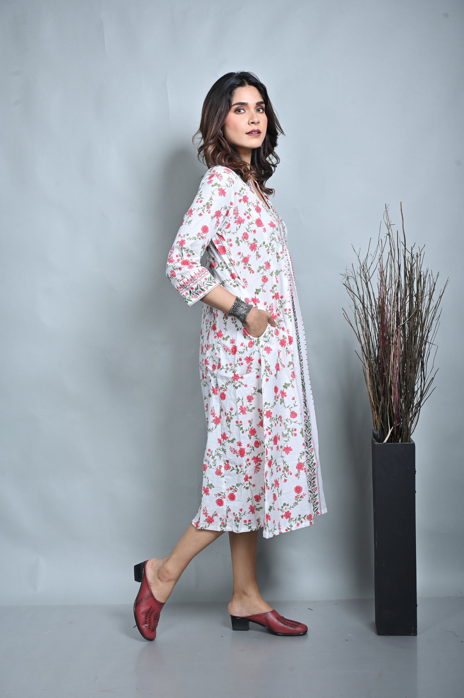 Elevate your everyday style with this White Floral Cotton Dress, crafted from breathable cotton for all-day comfort. Featuring delicate gathers and a charming floral print, this dress is perfect for effortless elegance.