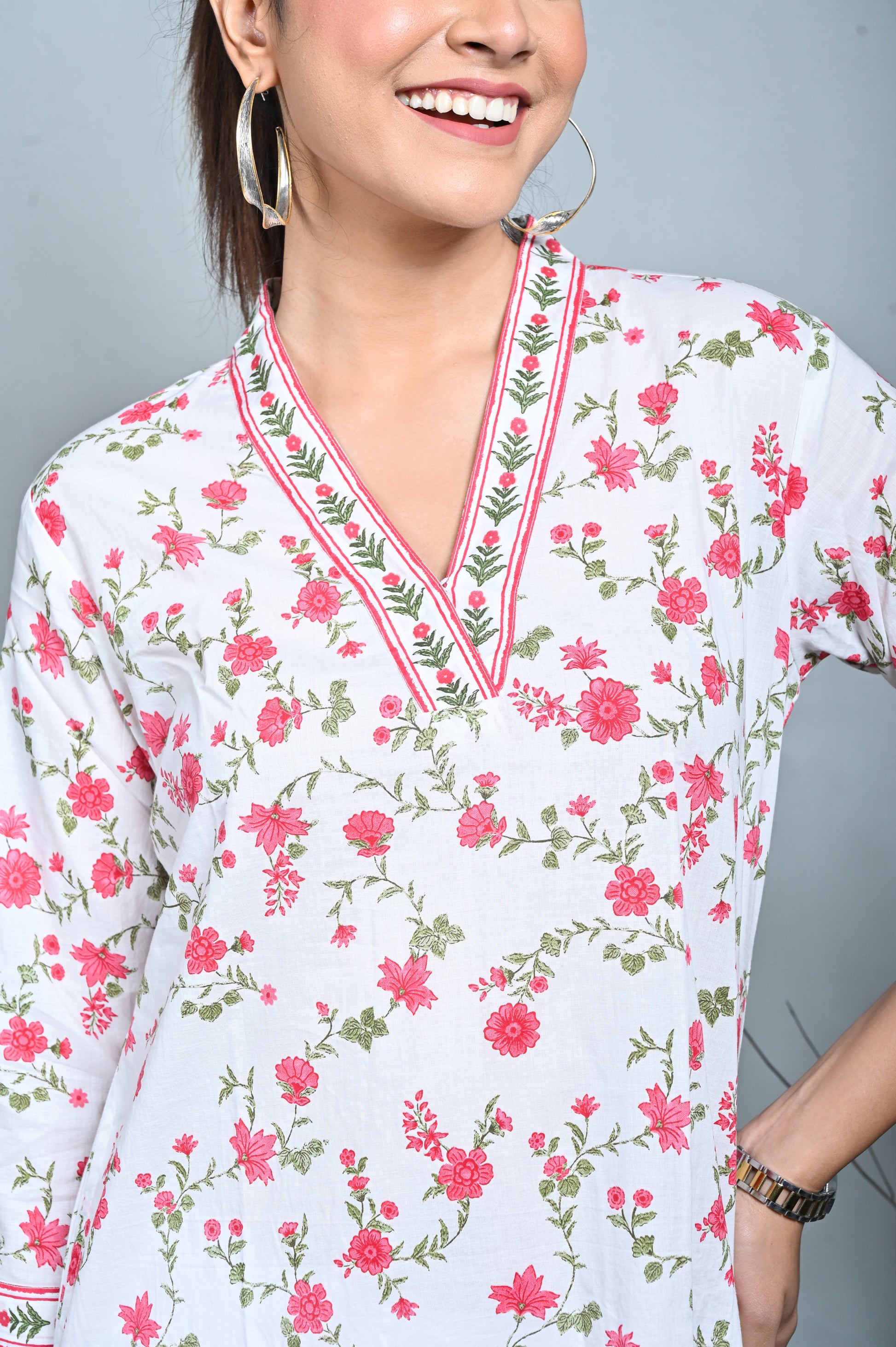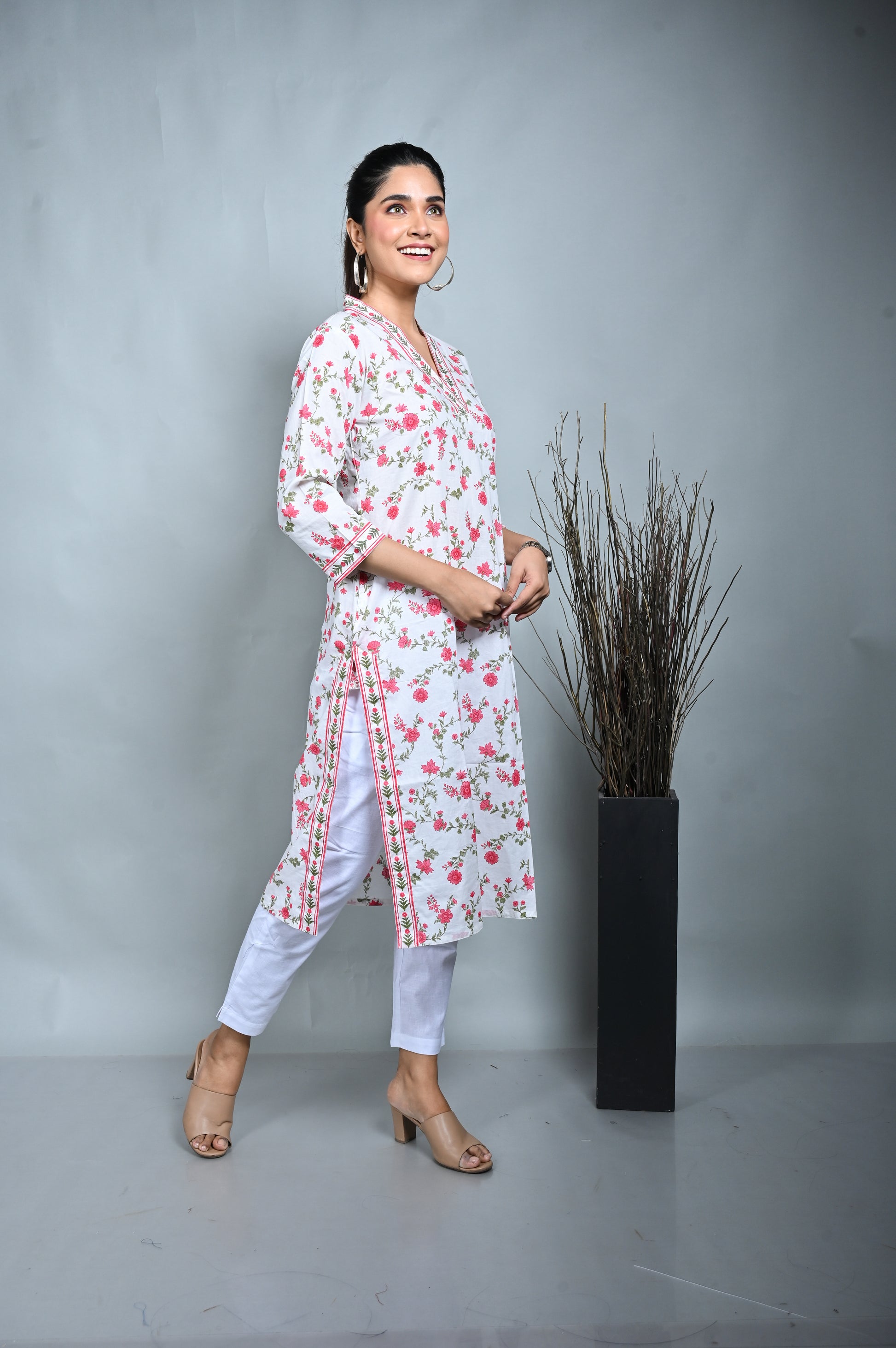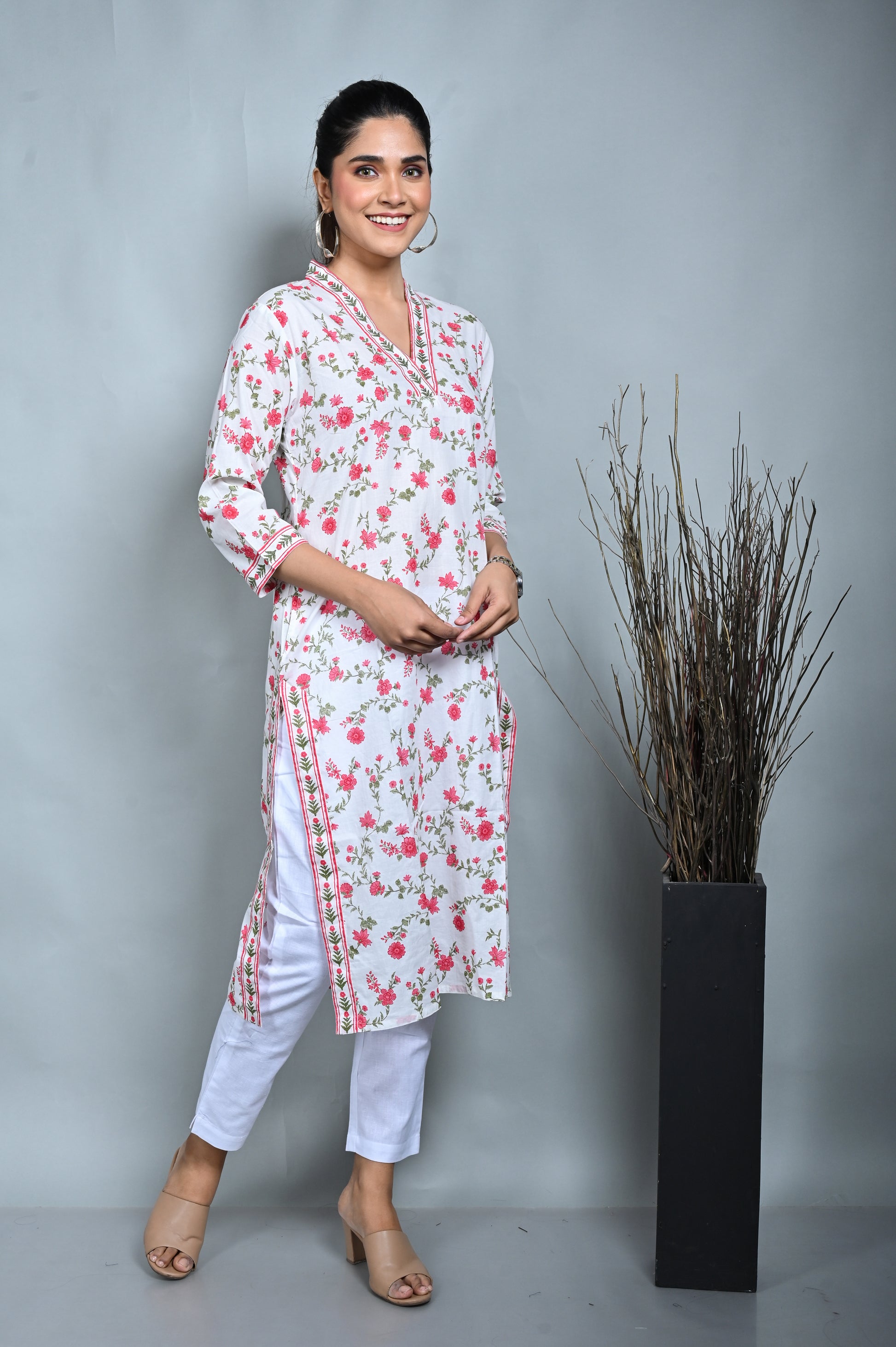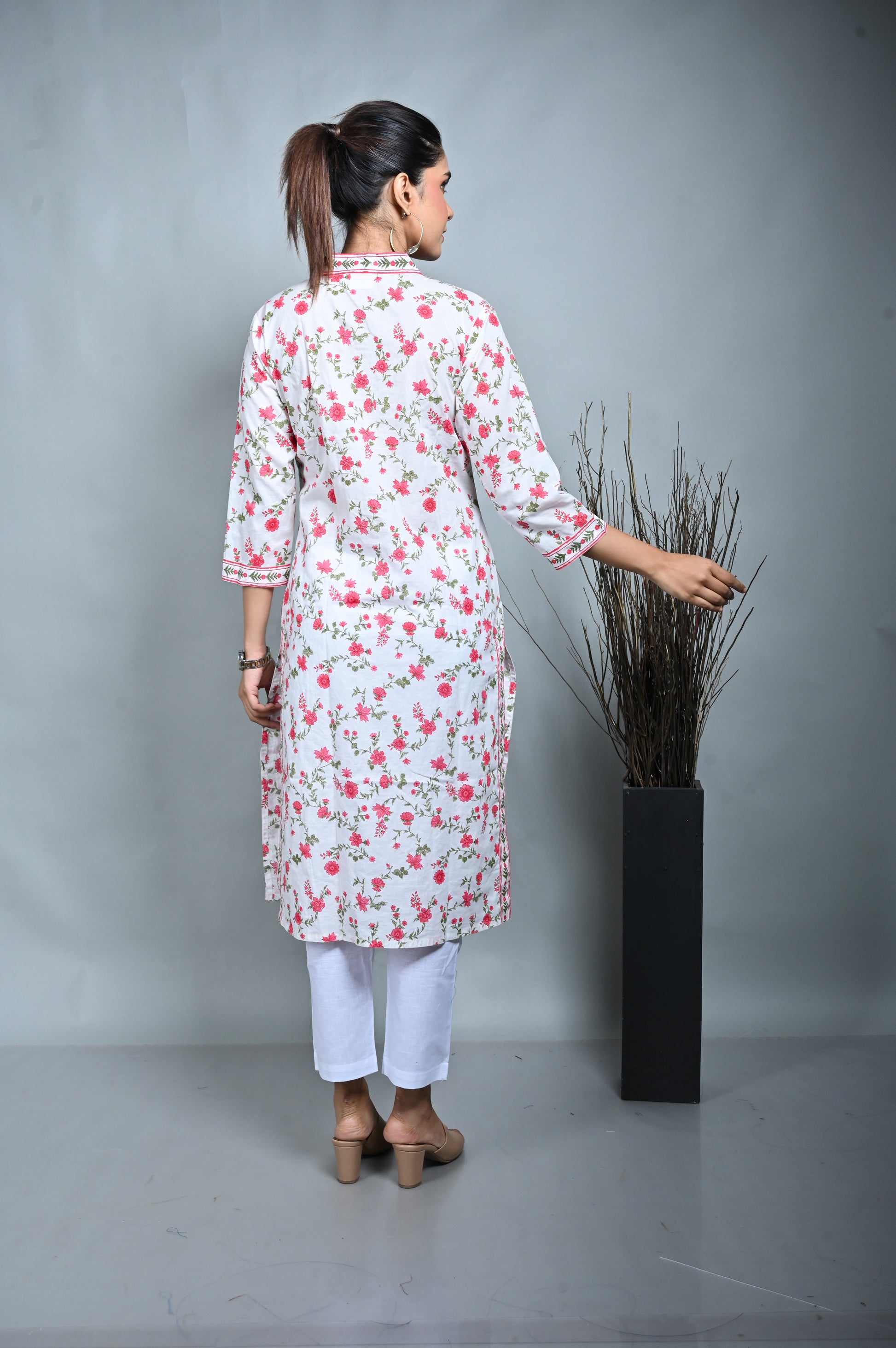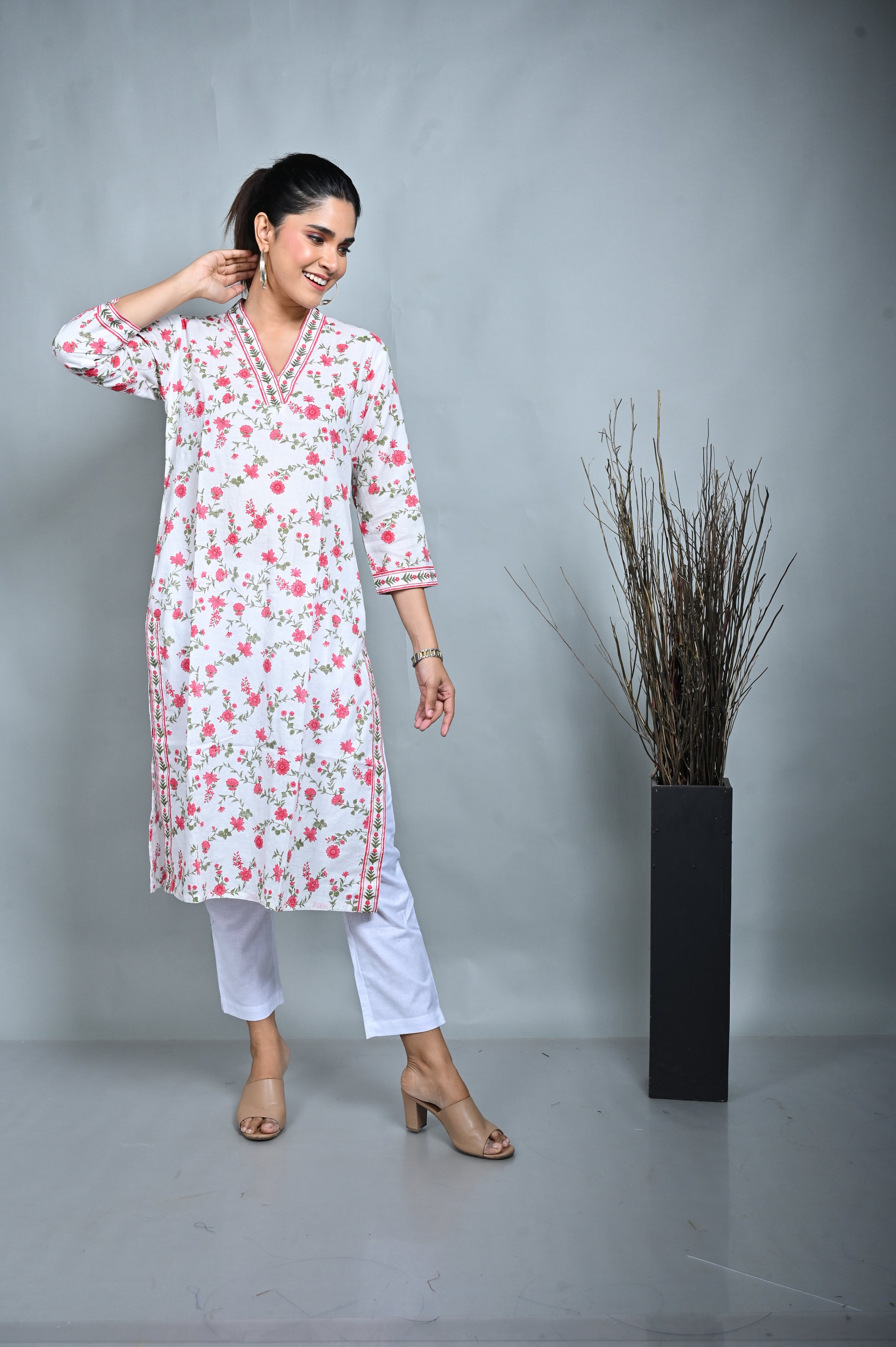 Discover elegance with our White Floral Printed Cotton Straight Cut Kurta. Perfect for any occasion, this stylish piece combines comfort and sophistication.