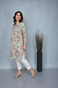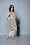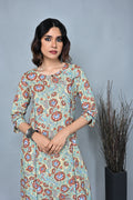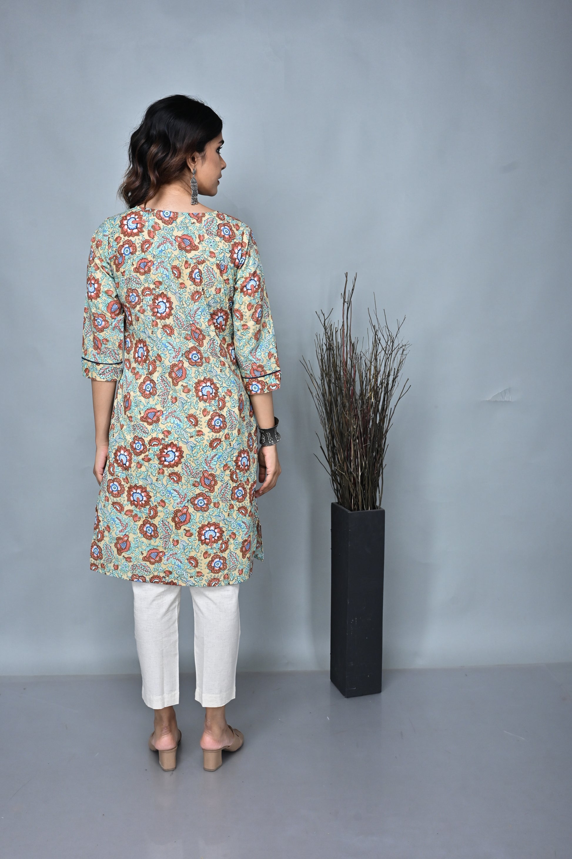 Yellow Cotton Floral Printed Straight Cut Kurta